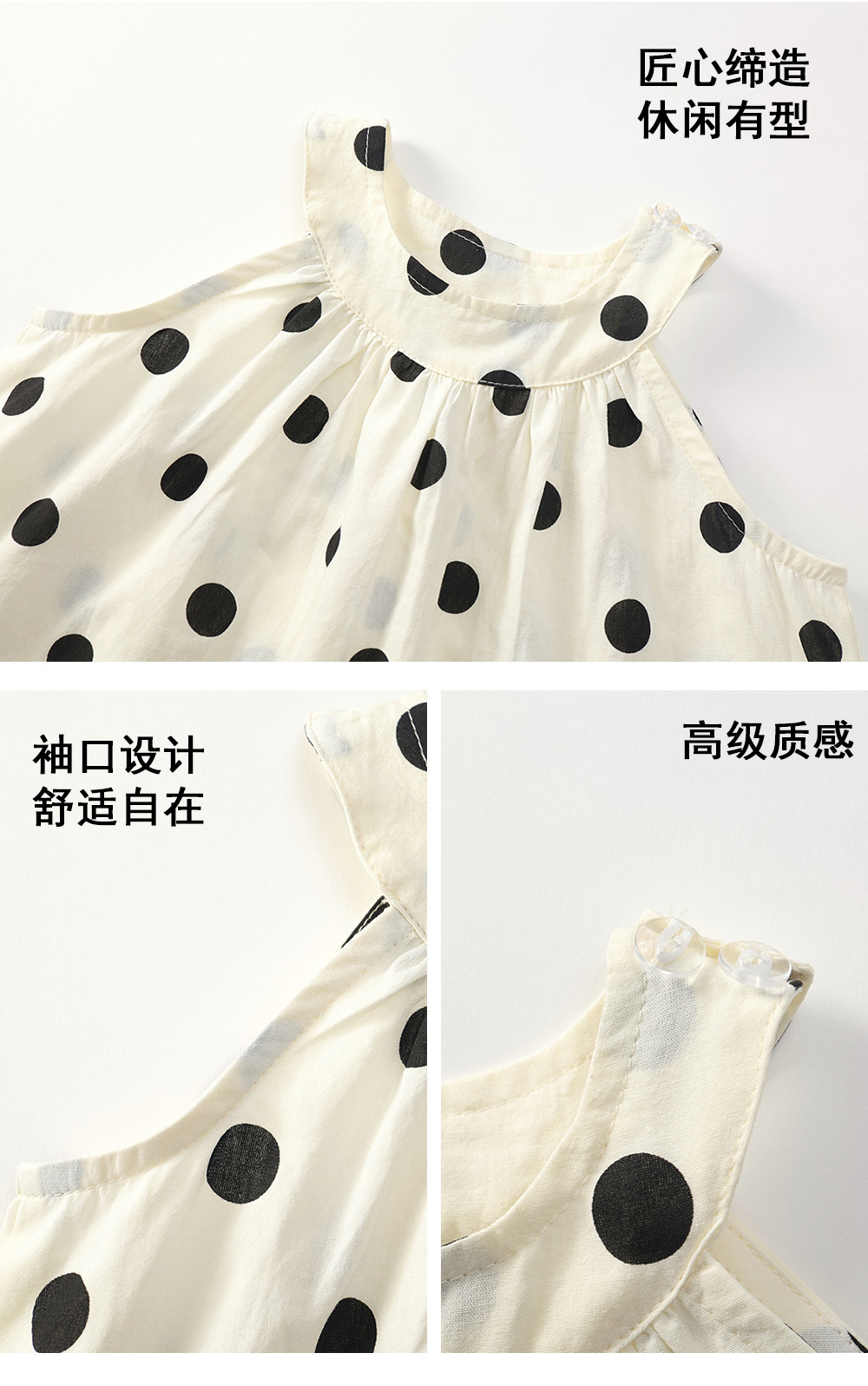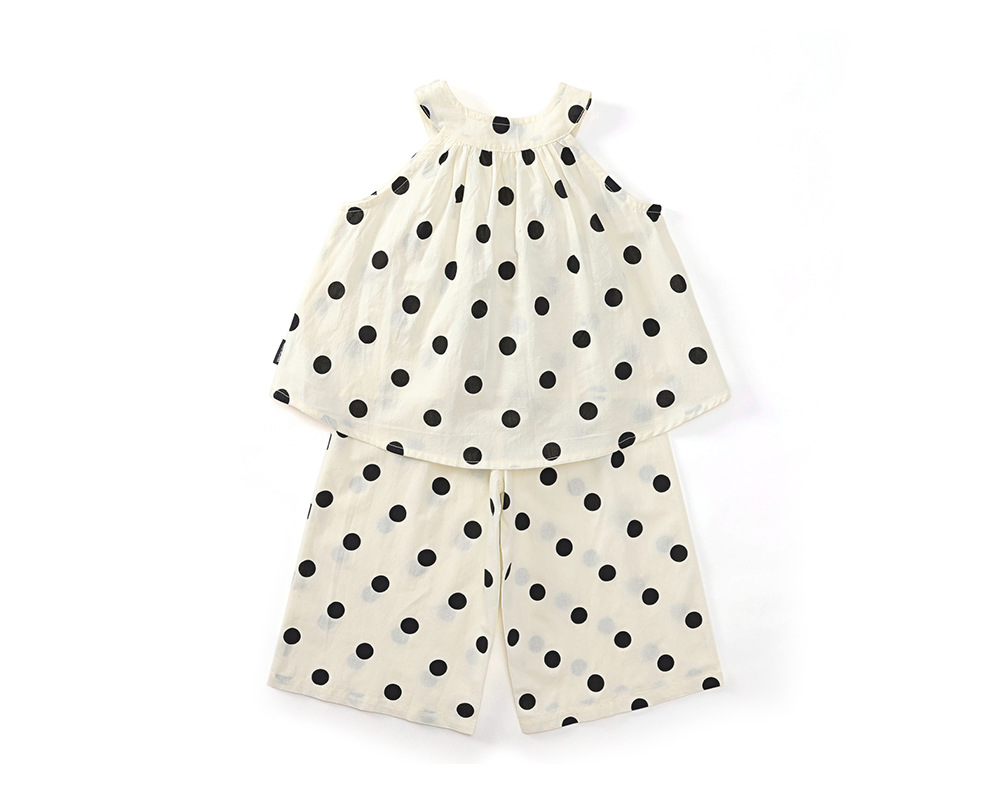 MDD 소녀 폴로 도트 세트 2025 여름 새로운 민소매 목 탑 넓은 다리 바지 안티 모기 바지 유치원스토어 가기