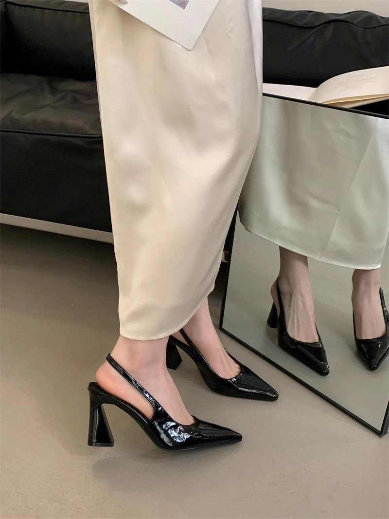 새로운 도착 스커트 프랑스 스타일 청키 힐 신발 녹색 발가락 샌들 2025 봄/여름 빈 뾰족한 뒤꿈치 여성용스토어 가기