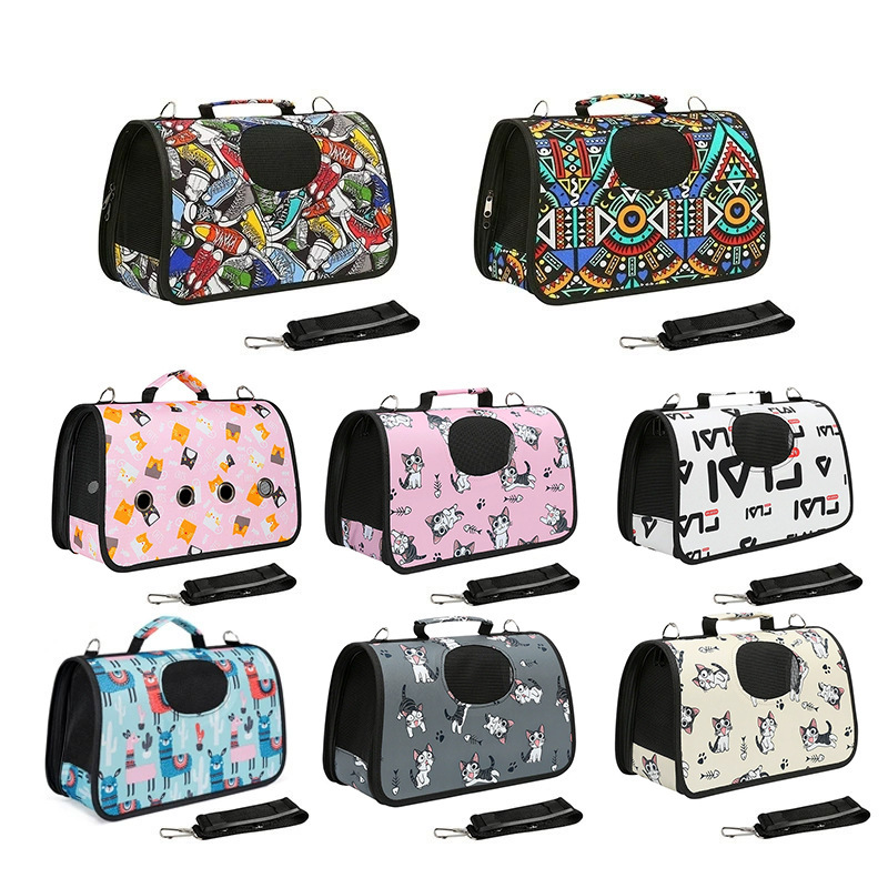 국경 간 도매 애완 동물 휴대용 고양이 가방 대각선 테이크 아웃 멀티 컬러 패턴 여행 가방 휴대용 고양이 배낭