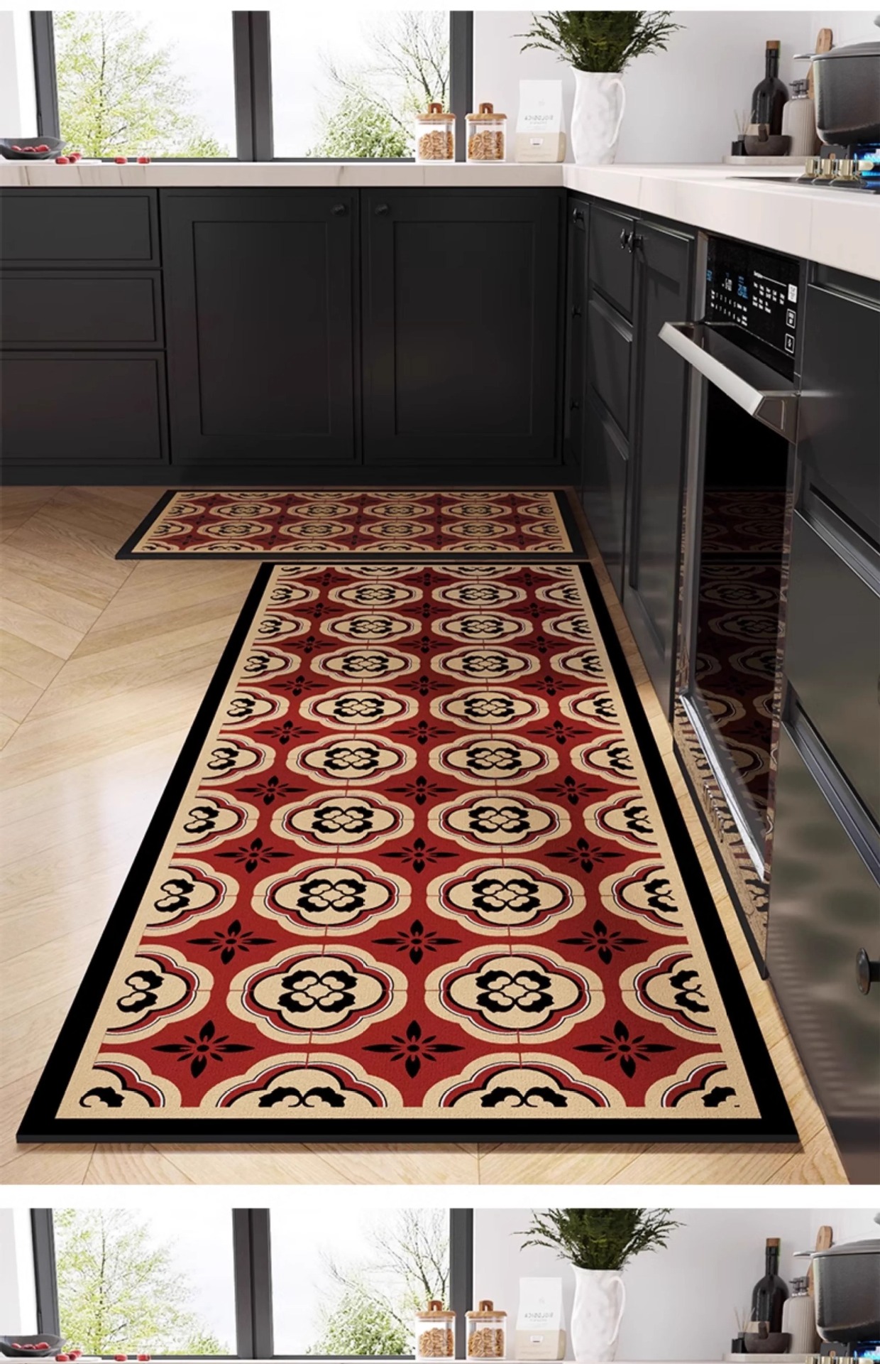 중세 스타일 주방 바닥 매트, 레스토랑 흡수성 및 기름 흡수성, 닦아낼 수 있는 미끄럼 방지 매트, 가정용 얼룩 방지 및 내마모성 규조토 진흙 바닥 매트