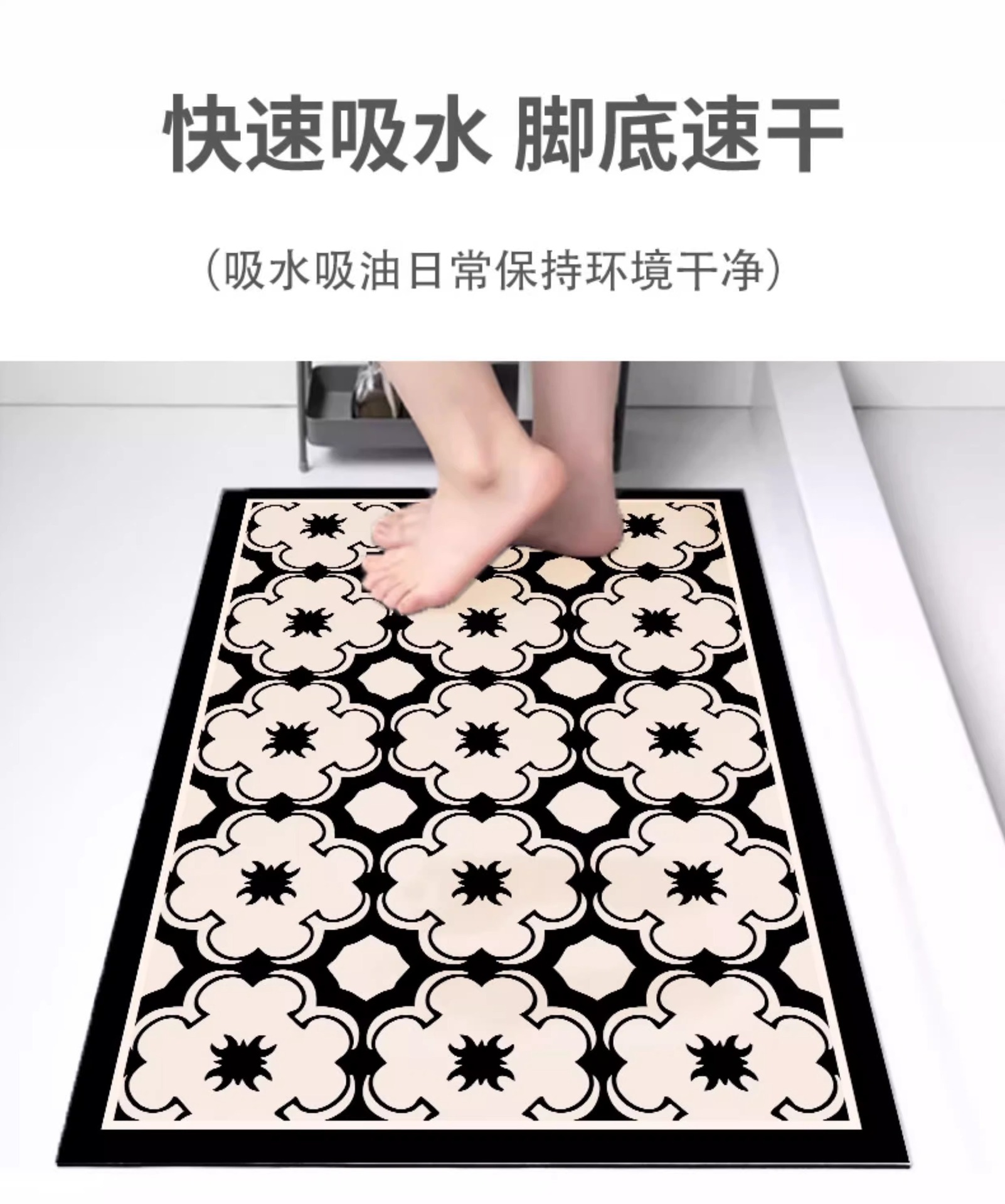 중세 스타일 주방 바닥 매트, 레스토랑 흡수성 및 기름 흡수성, 닦아낼 수 있는 미끄럼 방지 매트, 가정용 얼룩 방지 및 내마모성 규조토 진흙 바닥 매트스토어 가기