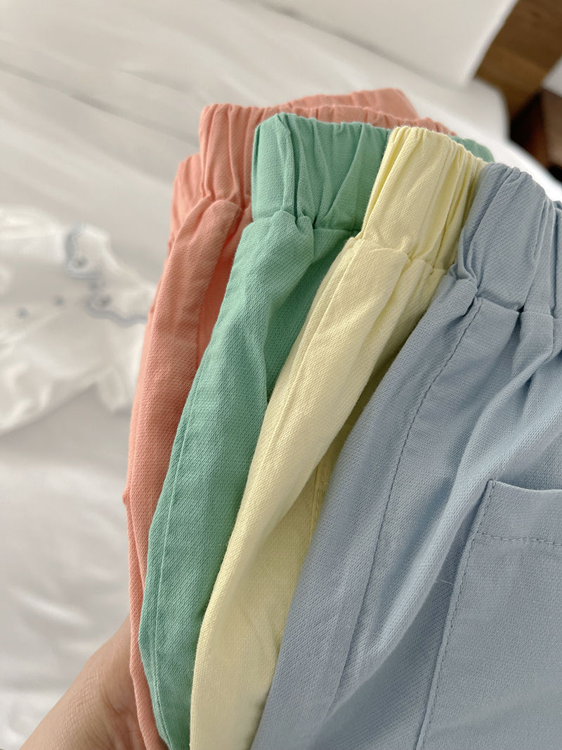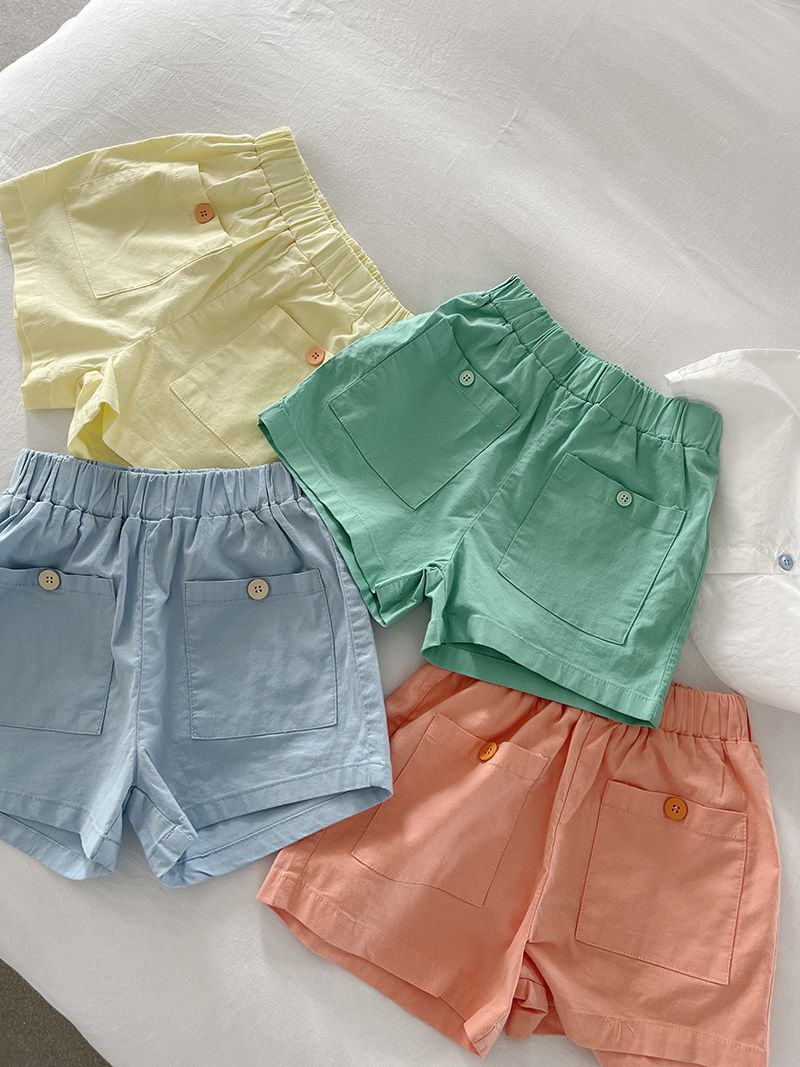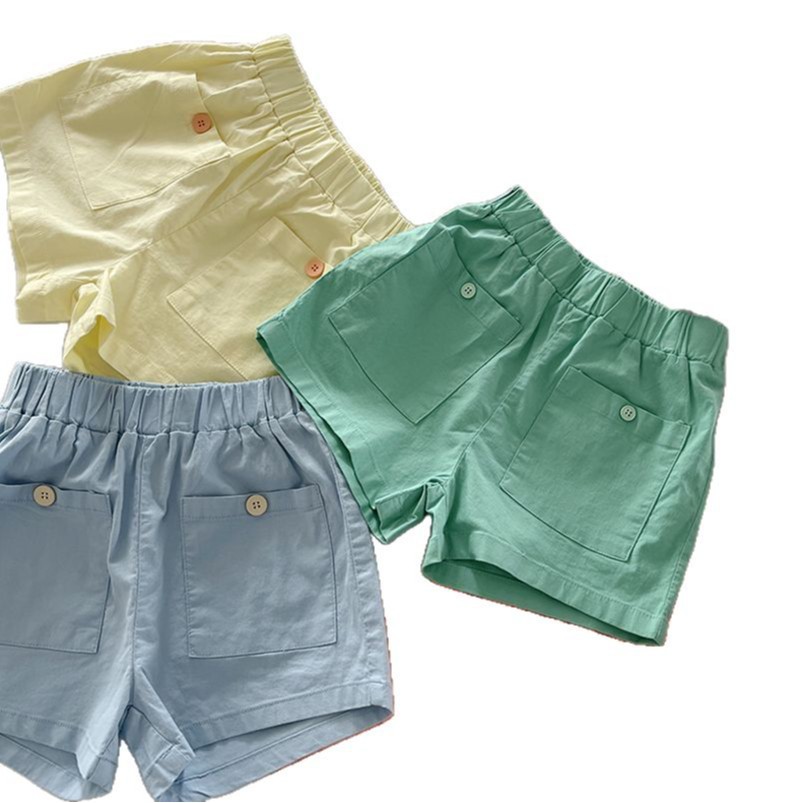 소년과 소녀 100% 면 반바지 캔디 컬러 한국 스타일 대형 포켓 솔리드 컬러 캐주얼 바지 얇은 느슨한 핫 팬츠 여름