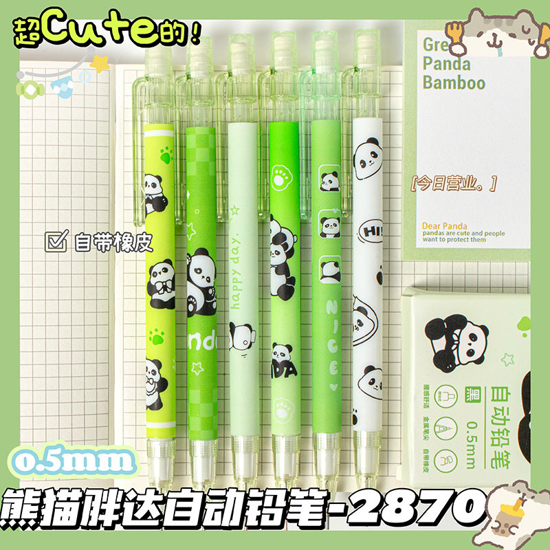 박스형 팬더 샤프펜슬, 귀여운 만화, 연속 리필 자동펜, 고급스러운 디자인, 깎지 않음, 고무프레스펜 포함스토어 가기