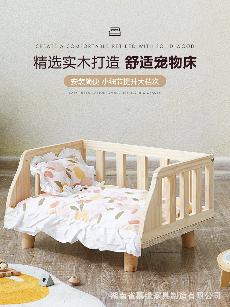 여름 사육장 사계절 유니버설 개 침대 작은 개 단단한 나무 애완 동물 침대 분리식 및 세척 가능한 테디 비터 팬더 고양이 침대