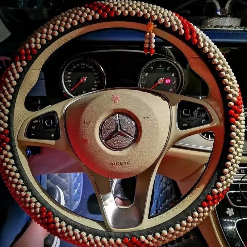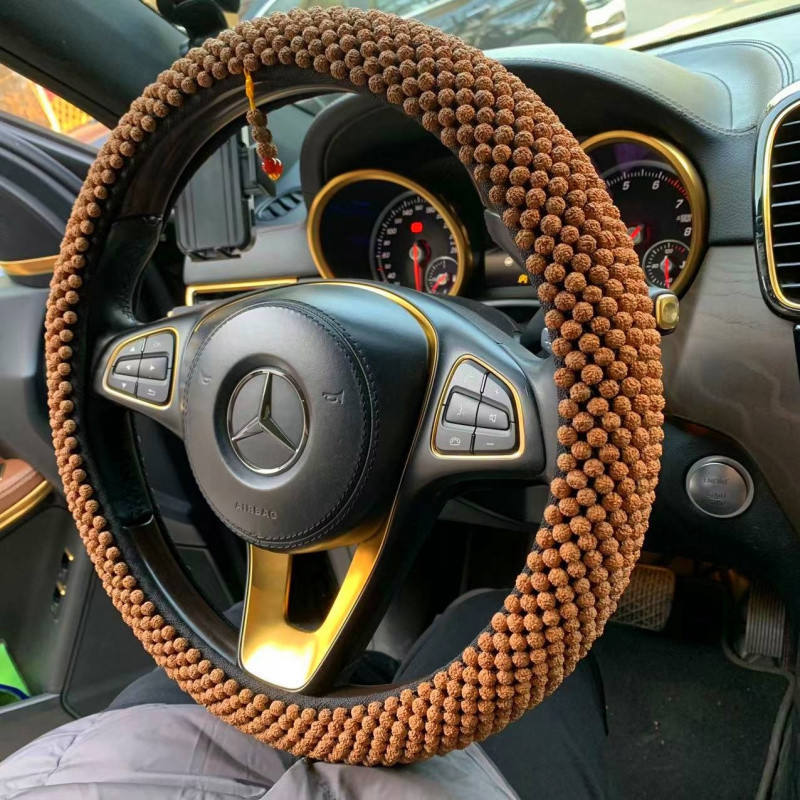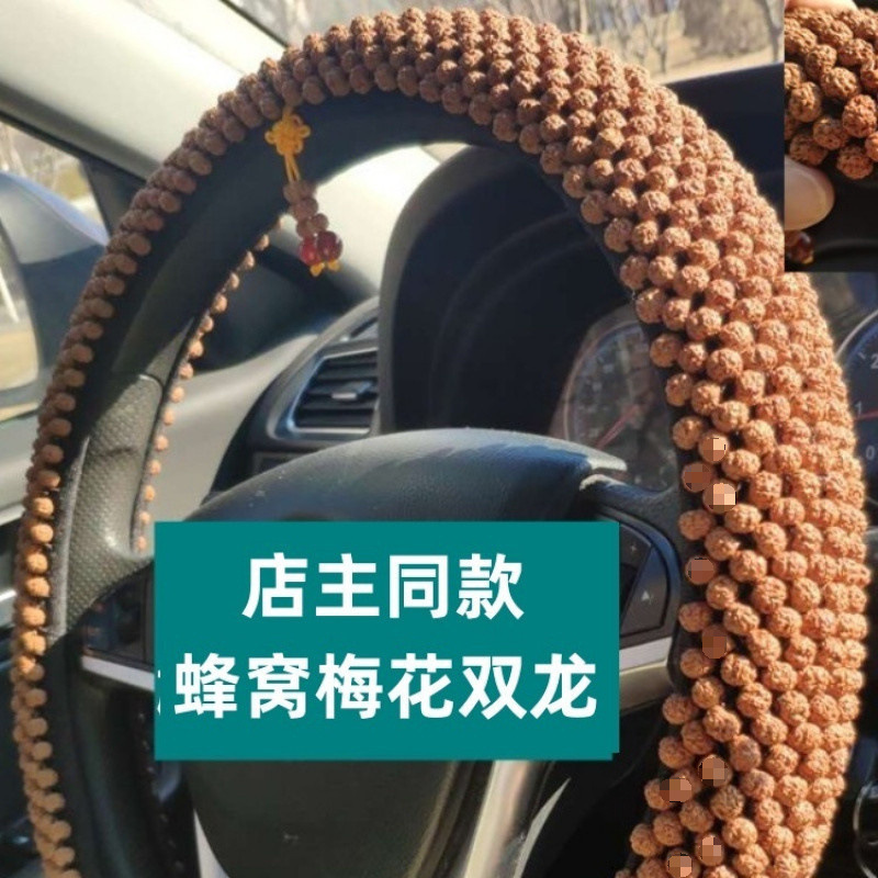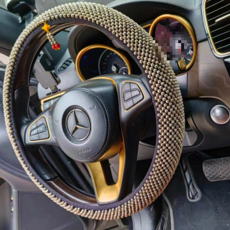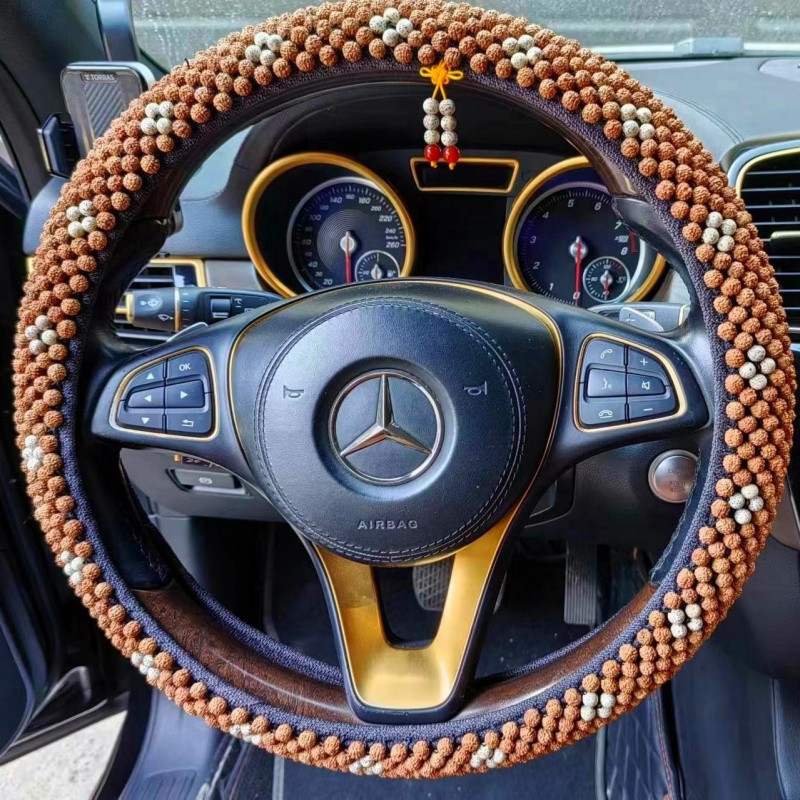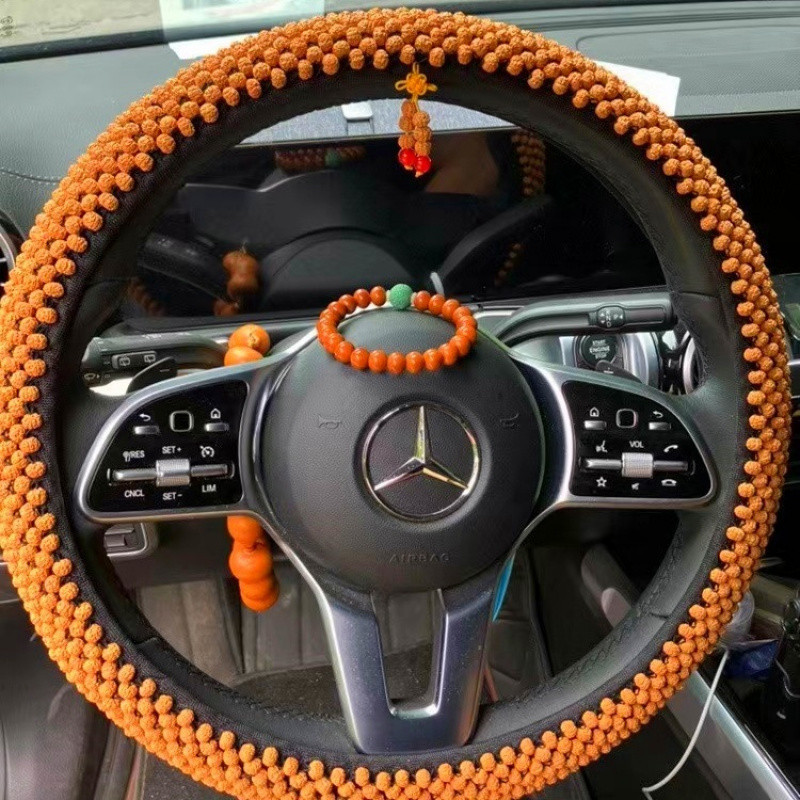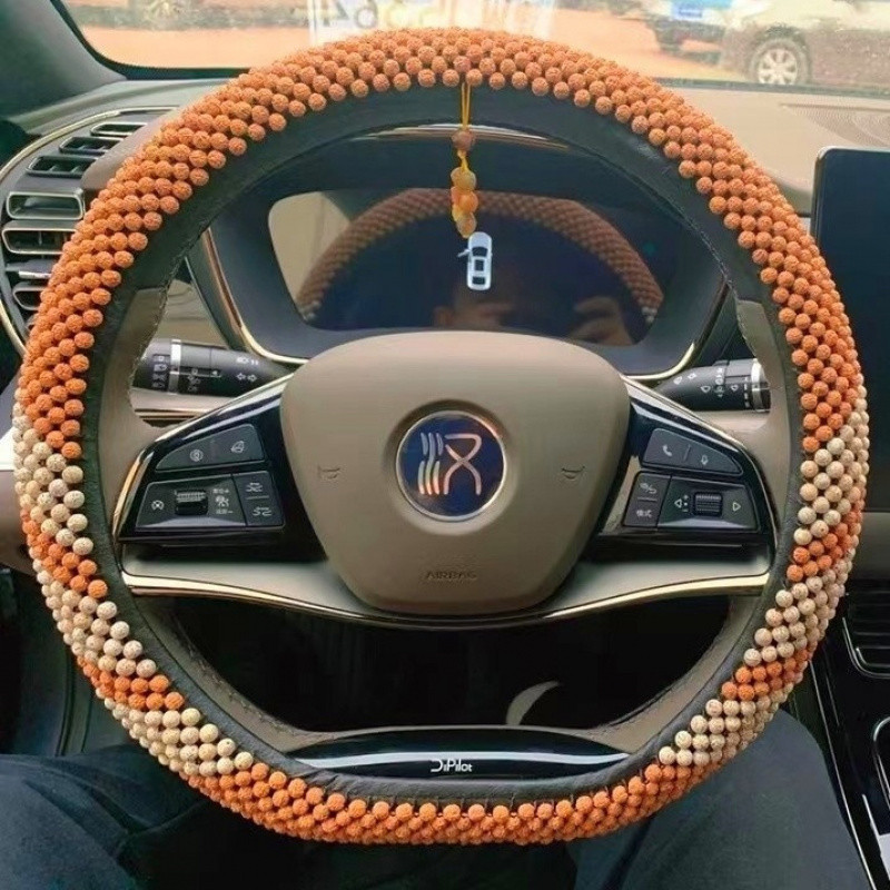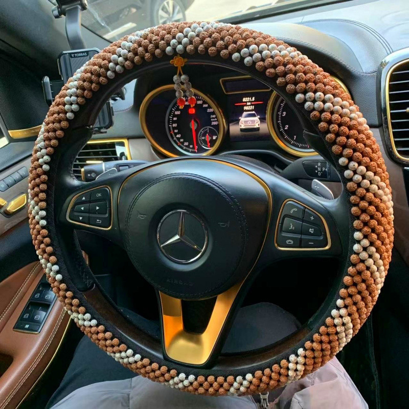 T9U King Kong Xingyue Bodhi 스티어링 휠 커버 범용 D 비즈 Wenwan 땀 흡수 및 미끄럼 방지 Bodhi 핸들 커버 순수 수제 및 내구성스토어 가기