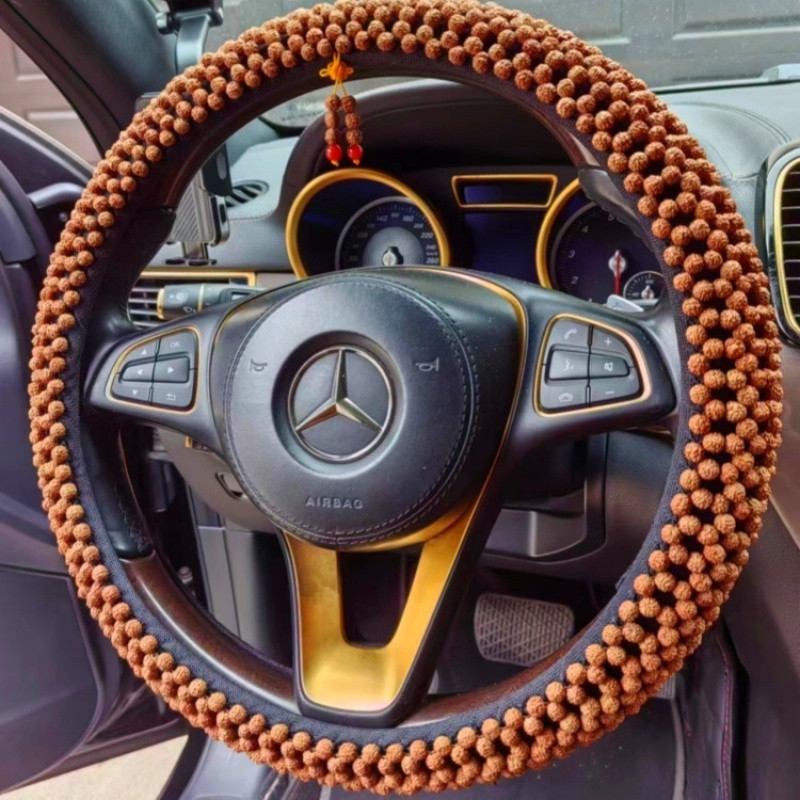 T9U King Kong Xingyue Bodhi 스티어링 휠 커버 범용 D 비즈 Wenwan 땀 흡수 및 미끄럼 방지 Bodhi 핸들 커버 순수 수제 및 내구성