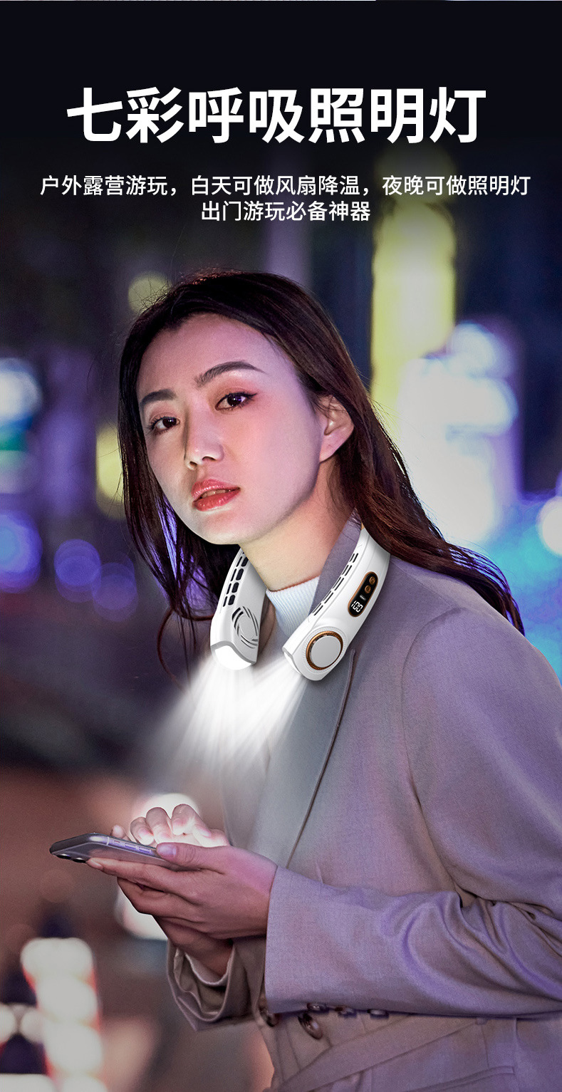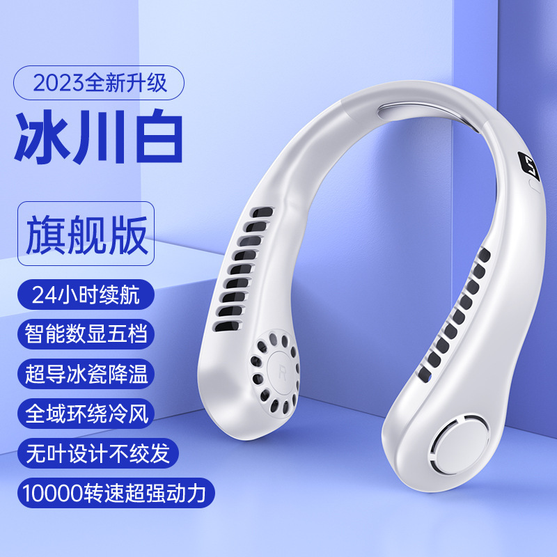 새로운 국경 휴대용 목 팬 USB 휴대용 음소거 다기능 리프 미니 가정용 소형 전기 팬스토어 가기