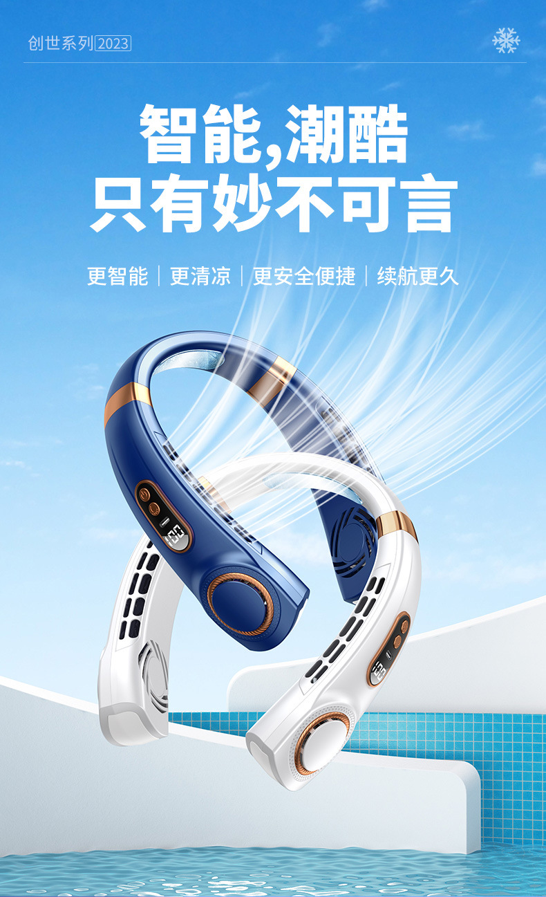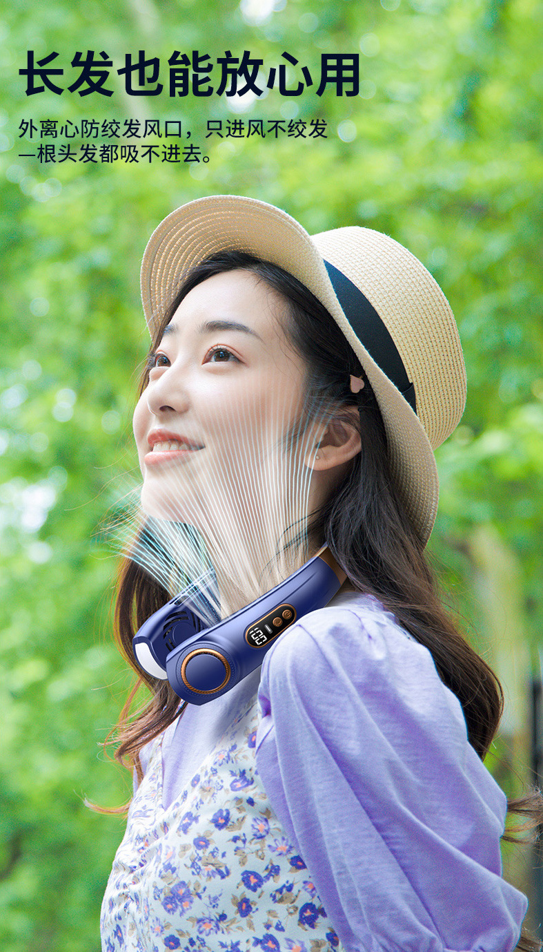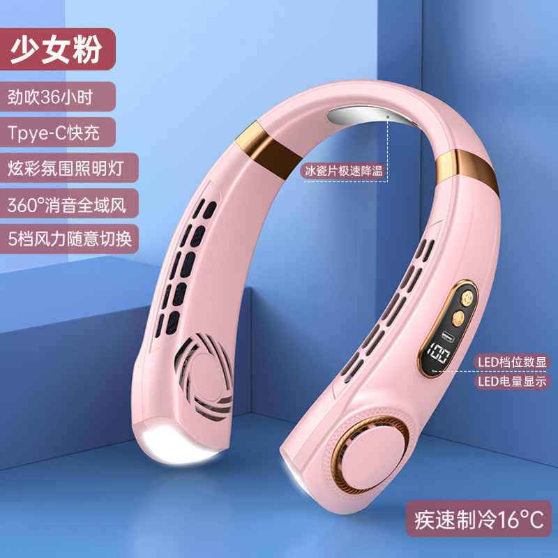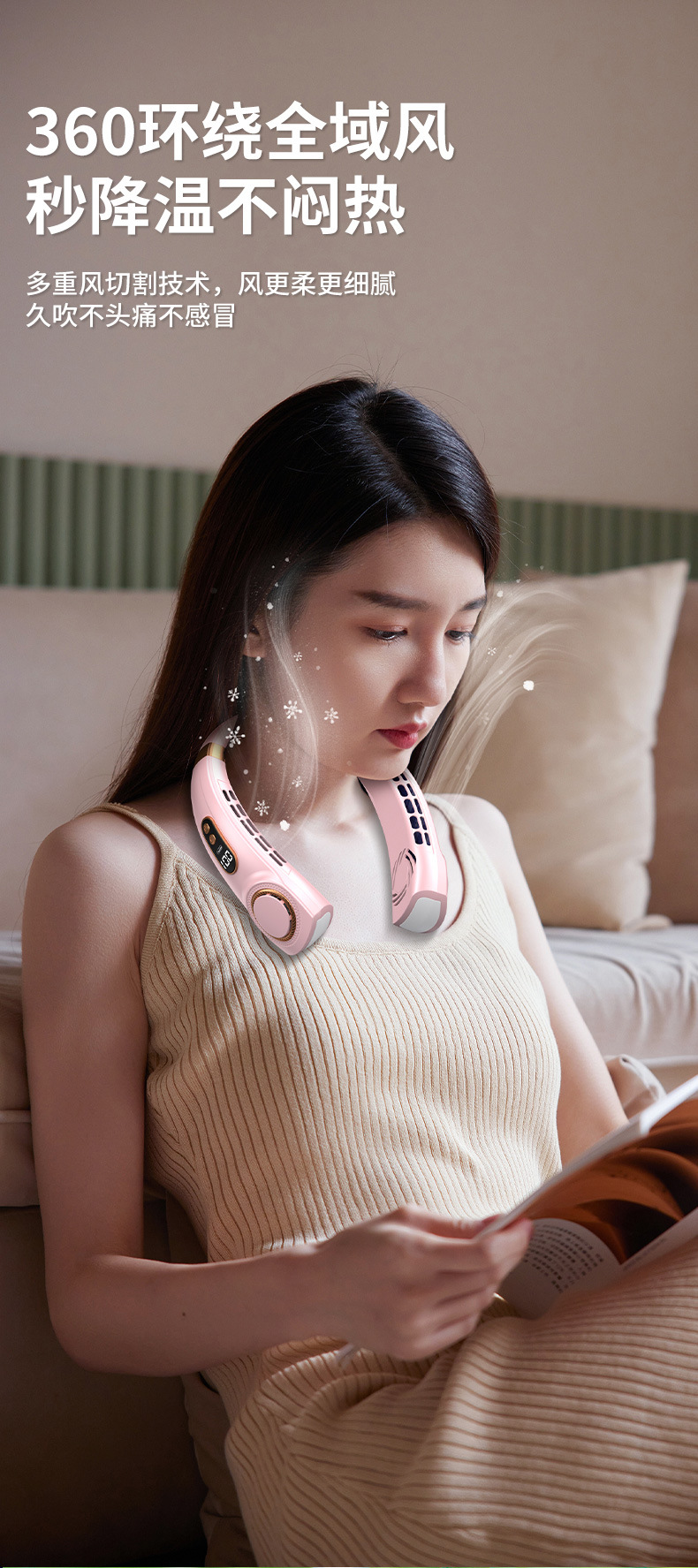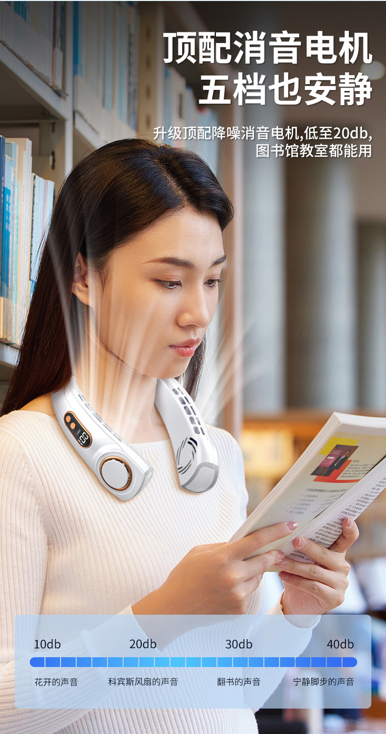 새로운 국경 휴대용 목 팬 USB 휴대용 음소거 다기능 리프 미니 가정용 소형 전기 팬