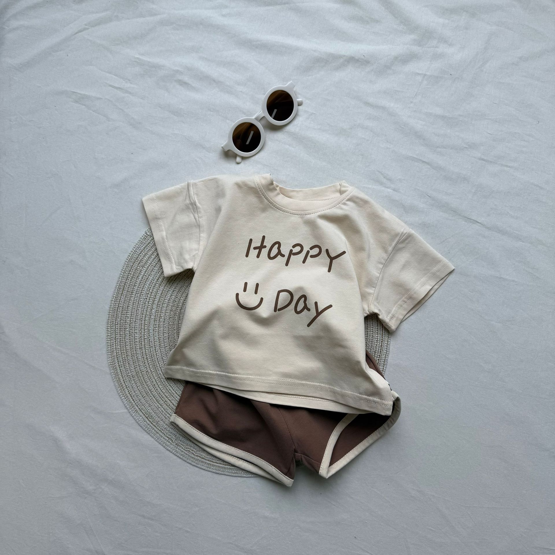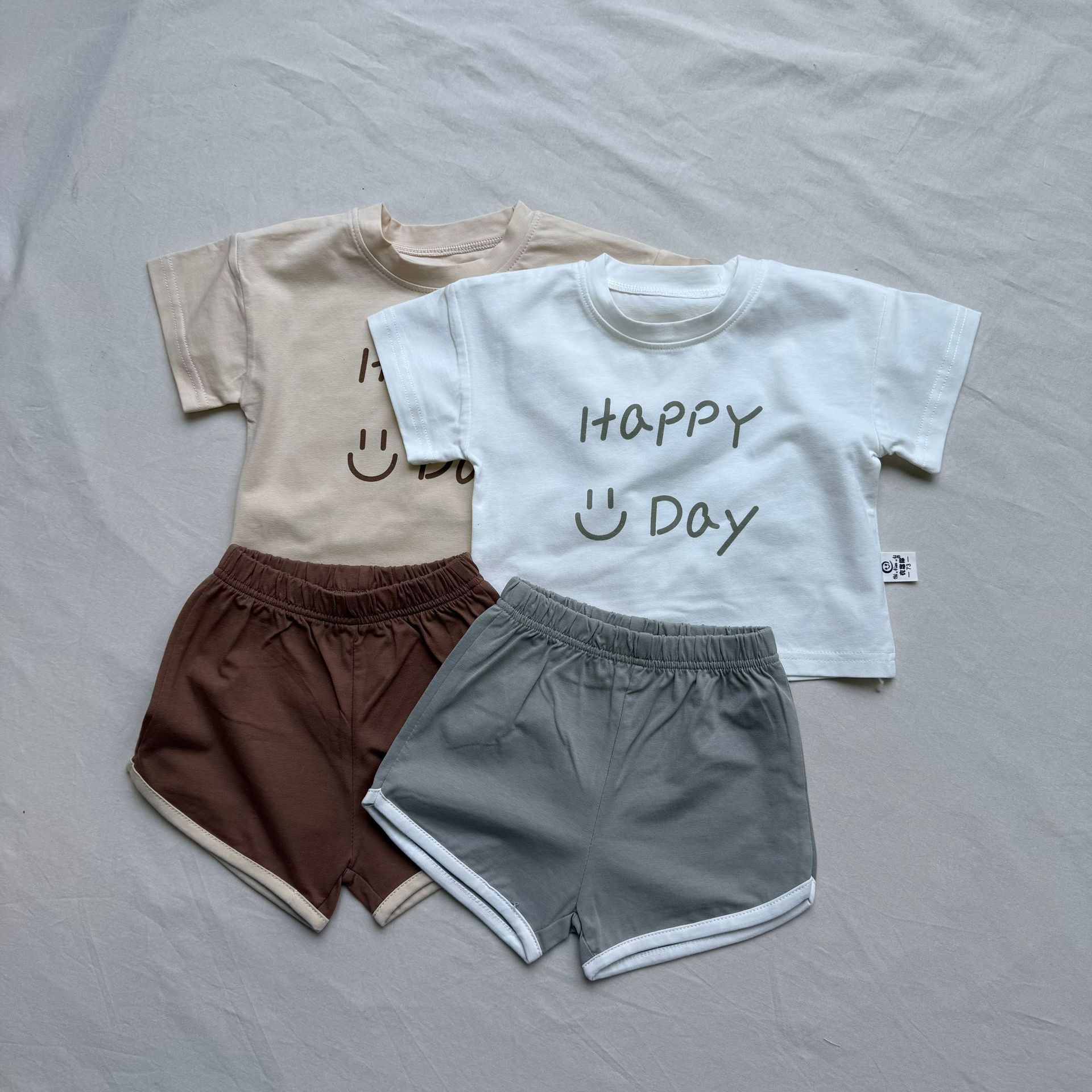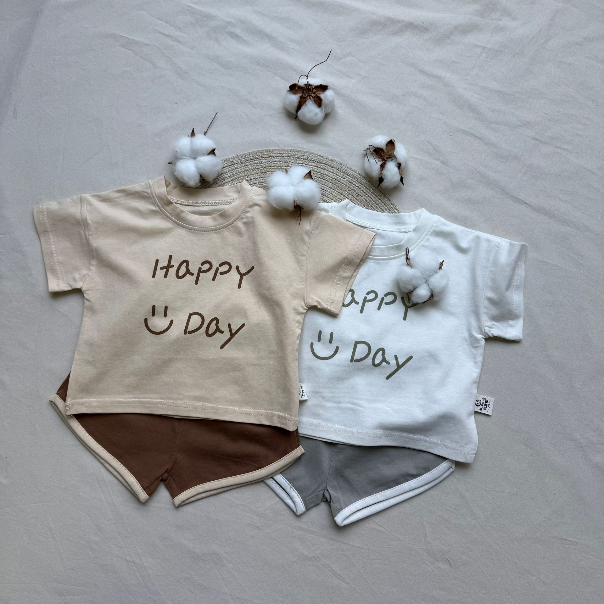 한국 스타일 간단한 아기와 유아 옷 2024 여름 어린이 편지 인쇄 명암 면화 세트 아기와 유아 아동복스토어 가기