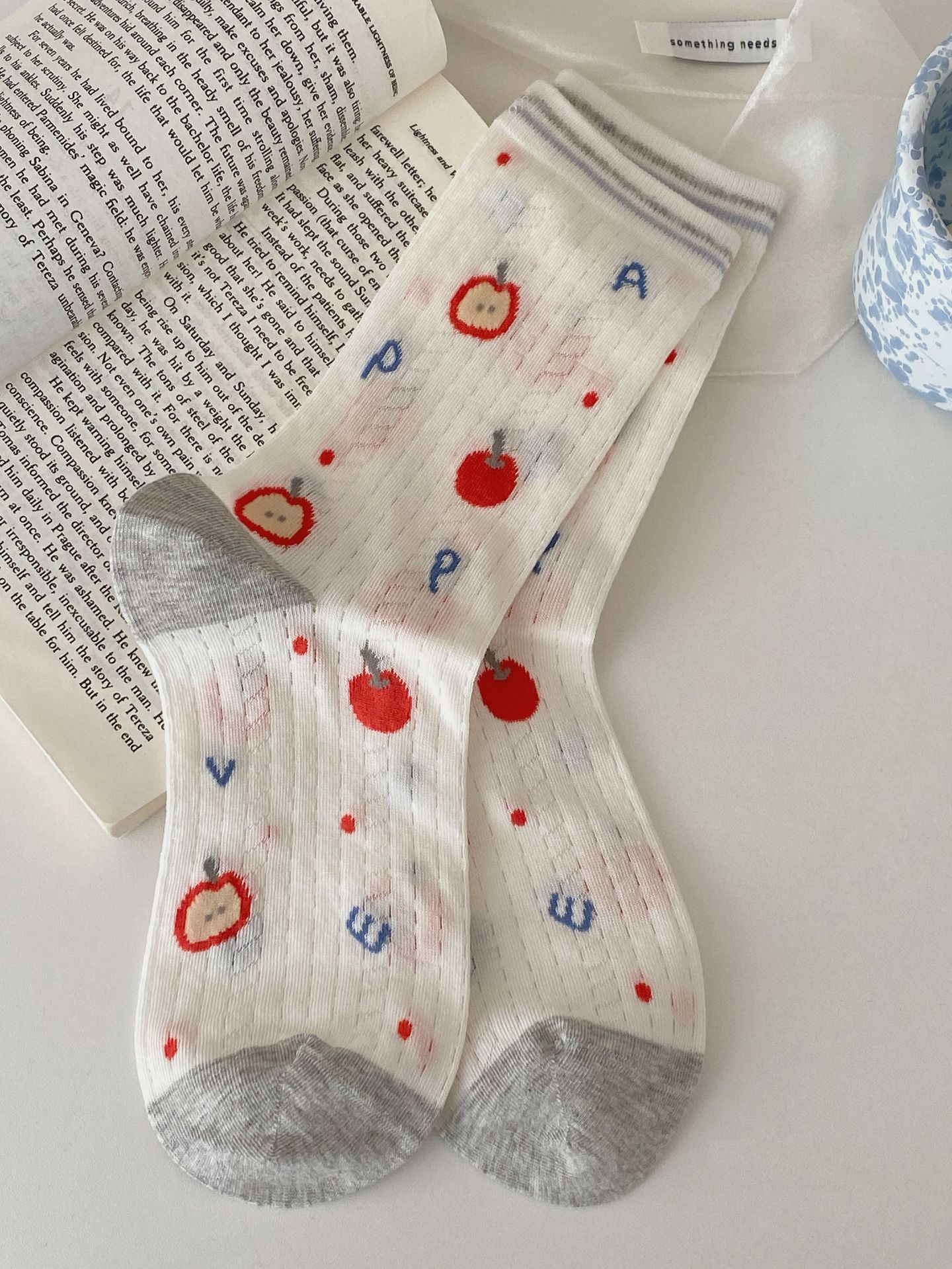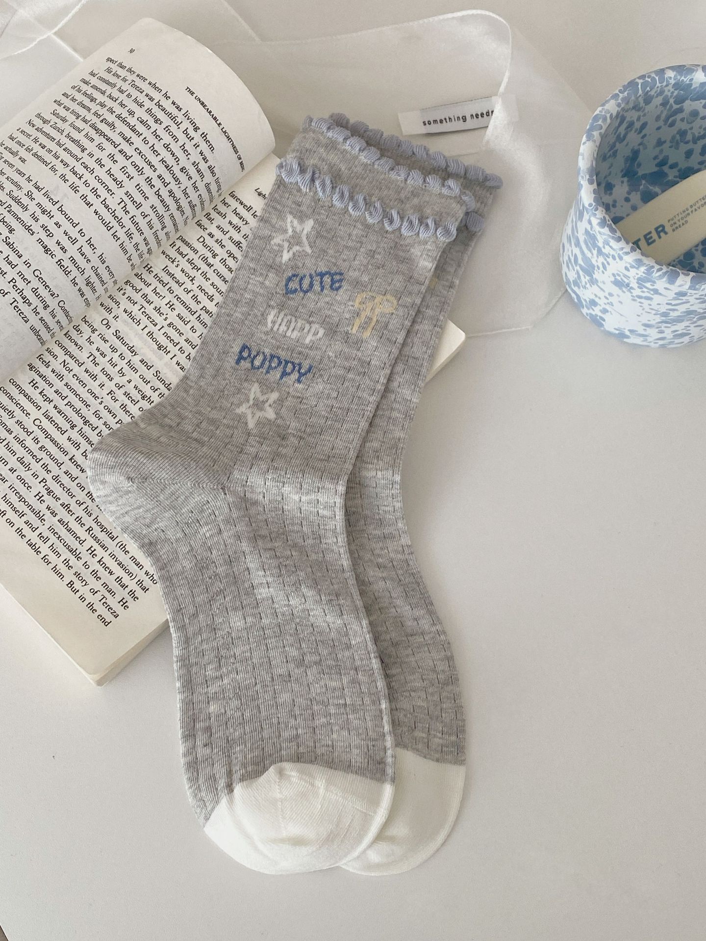 봄과 여름 얇은 메쉬 통기성 만화 강아지 귀여운 일본 편안한 면 문자 회색 한국 튜브 양말스토어 가기