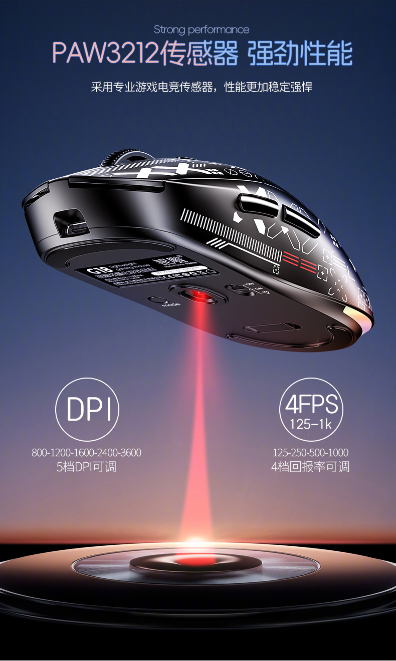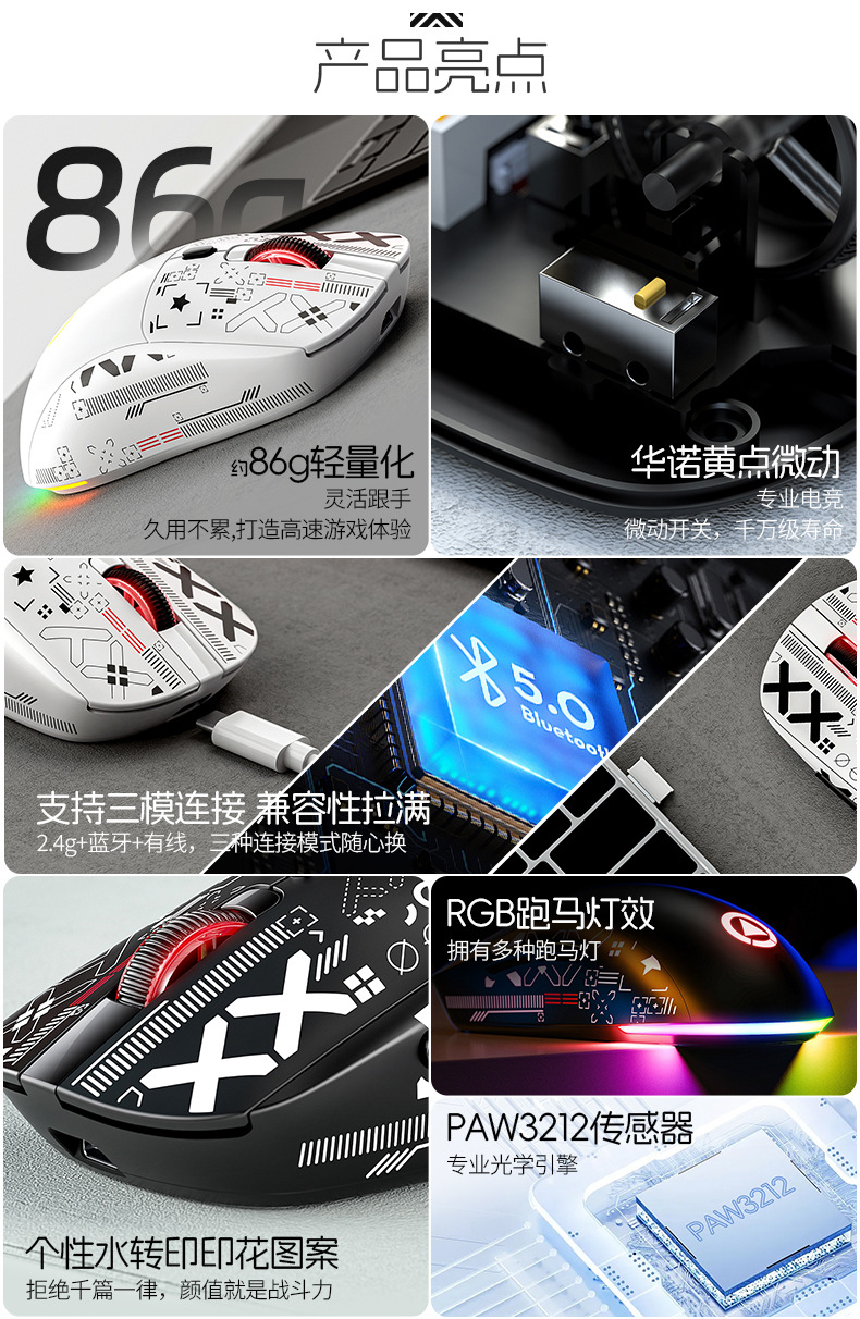 실버 G18 블루투스 무선 3 모드 경량 마우스 게임 E-스포츠 데스크톱 컴퓨터 RGB 유선 아마존 개인 모델