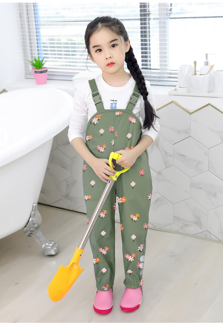어린이 스트랩 비 바지 봄과 여름 얇은 유치원 2-8 세 소년 소녀 진흙 및 모래 파기 장비로 노는 야외 방수 바지