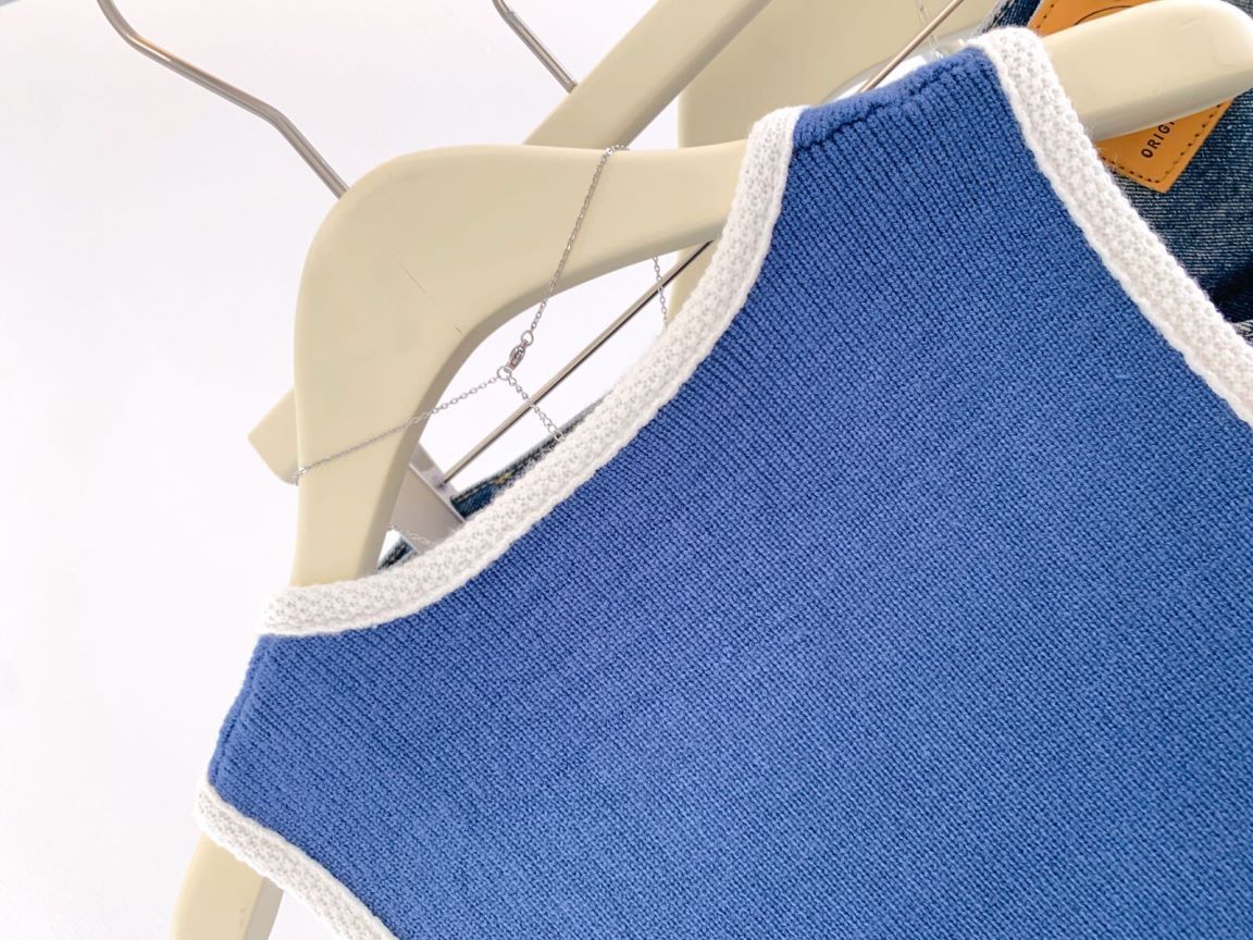 实拍~撞色V领无袖针织背心女夏设计感小众2024减龄百搭短款上衣