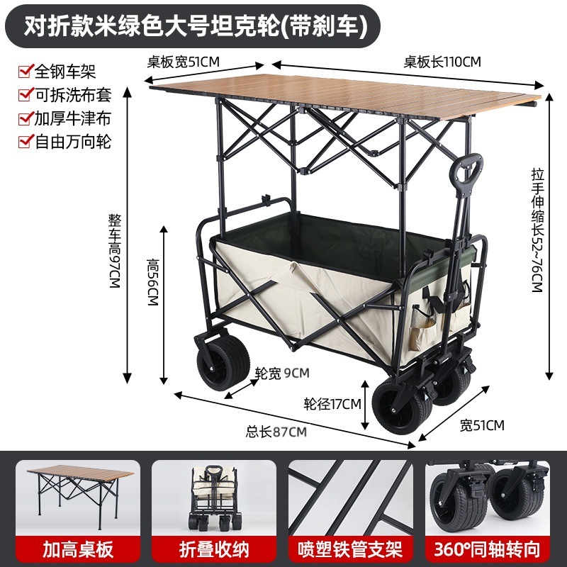 • 카키색/오프로드 휠/ 8inch 더블 브레이크 유니버설 휠 - 야외 캠핑카 + 확장 및 높이 조절 접이식 테이블