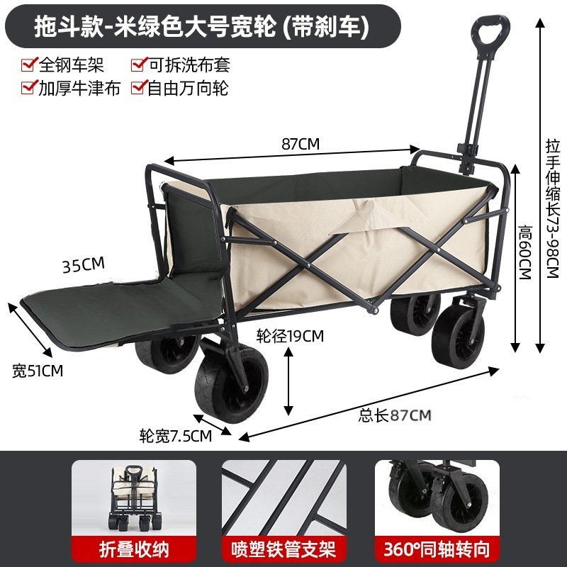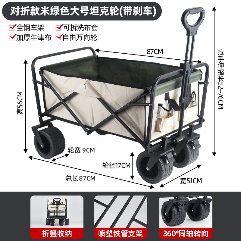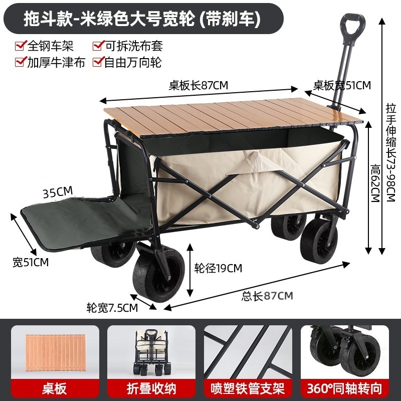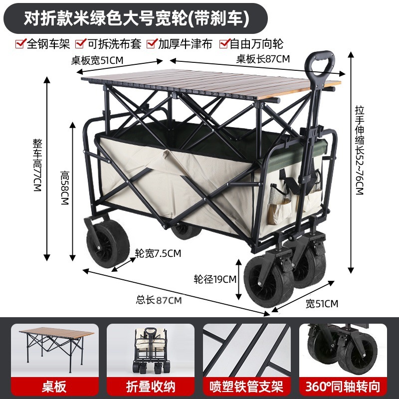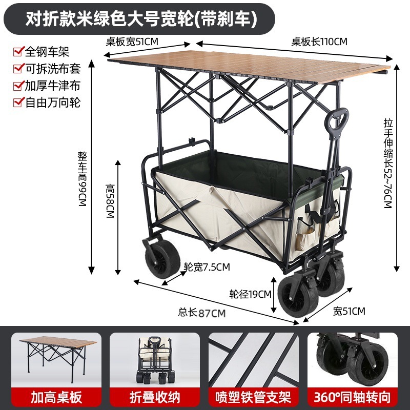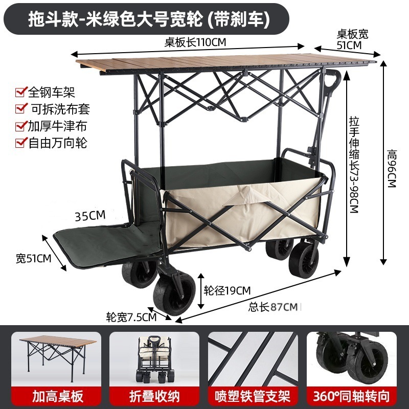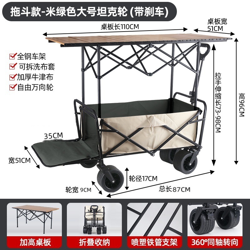 • 리어플립베이지그린/82탱크 더블브레이크 유니버셜 휠 - 아웃도어 캠핑카 + 길어지고 넓어지고 높아진 접이식 테이블