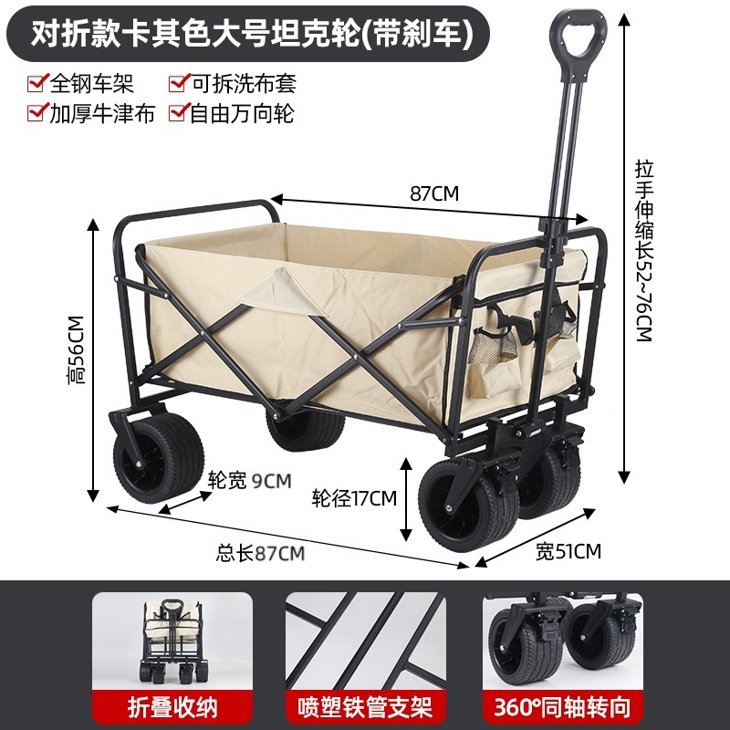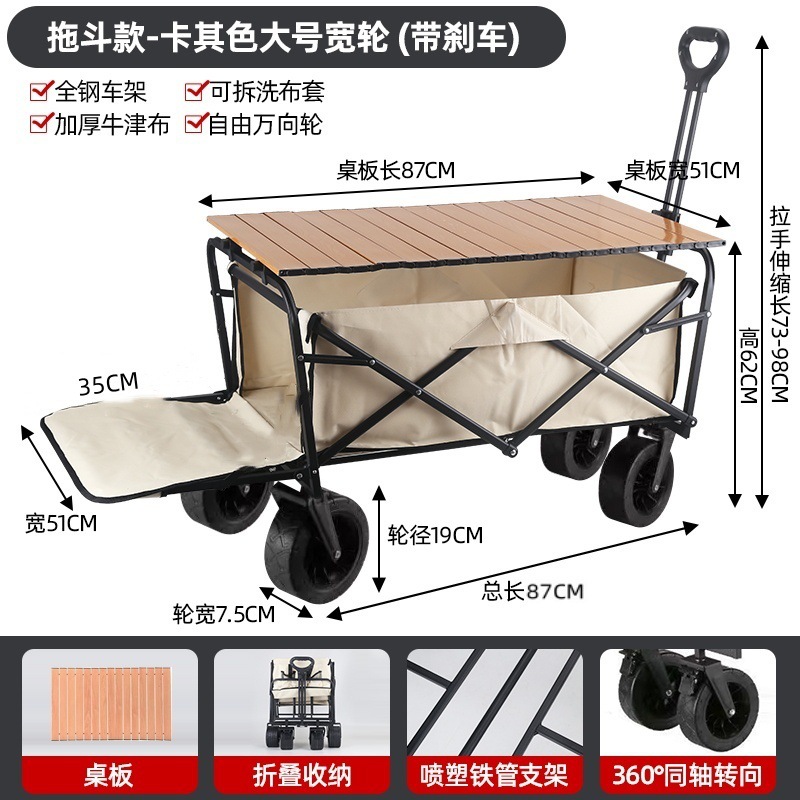 • 카키/ 10inch 탱크 더블 브레이크 유니버설 휠 - 야외 캠핑카 + 접이식 데스크탑