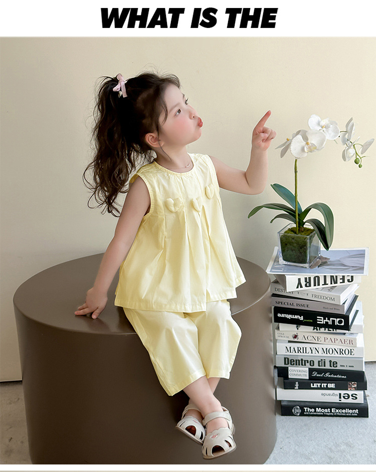 소녀 여름 세트 2025 새로운 외국 스타일의 어린 소녀 그물 빨간 조끼 어린 소녀 여름 넓은 다리 바지 투피스 세트