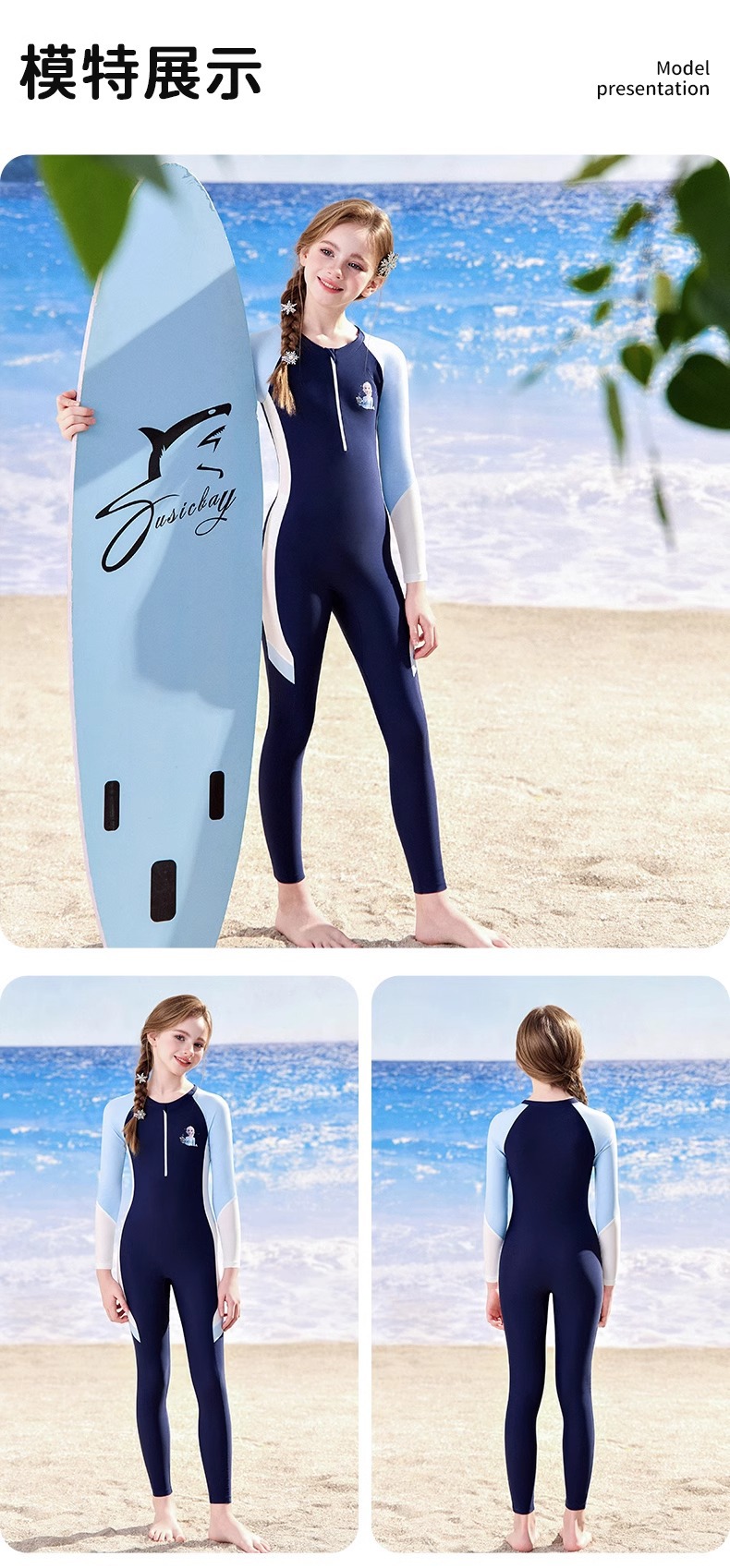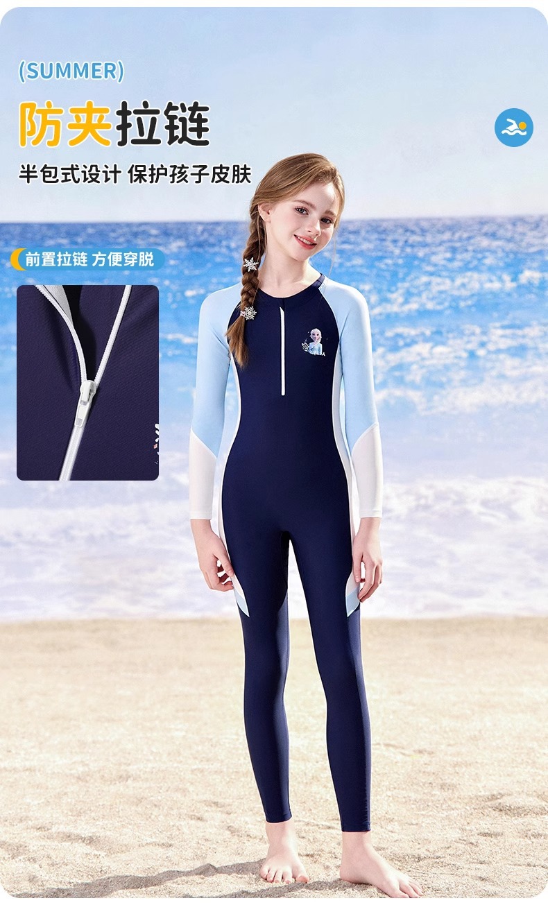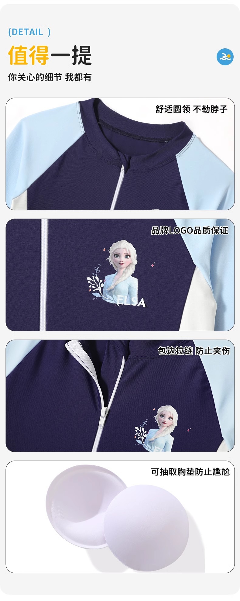 디즈니 어린이 수영복 소녀 2025 새로운 스타일 소녀 원피스 긴팔 패션 속건 수영복 중대형 아동복