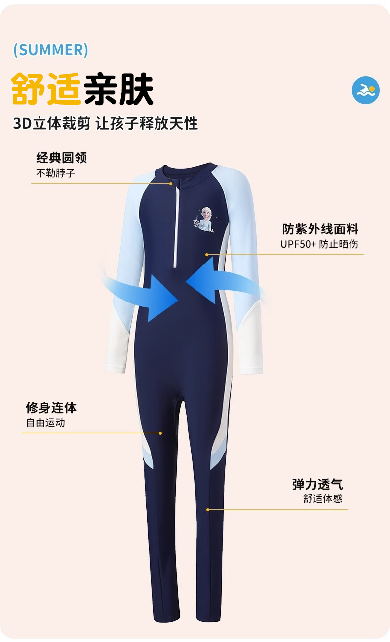 디즈니 어린이 수영복 소녀 2025 새로운 스타일 소녀 원피스 긴팔 패션 속건 수영복 중대형 아동복스토어 가기