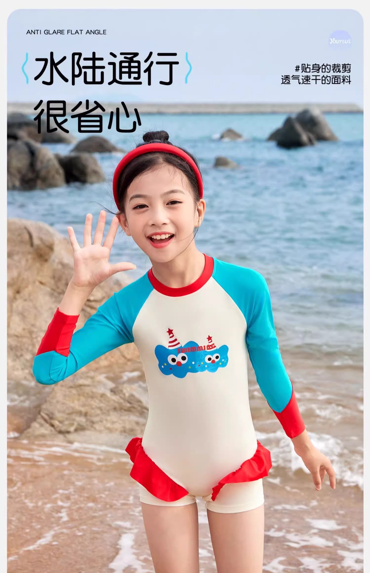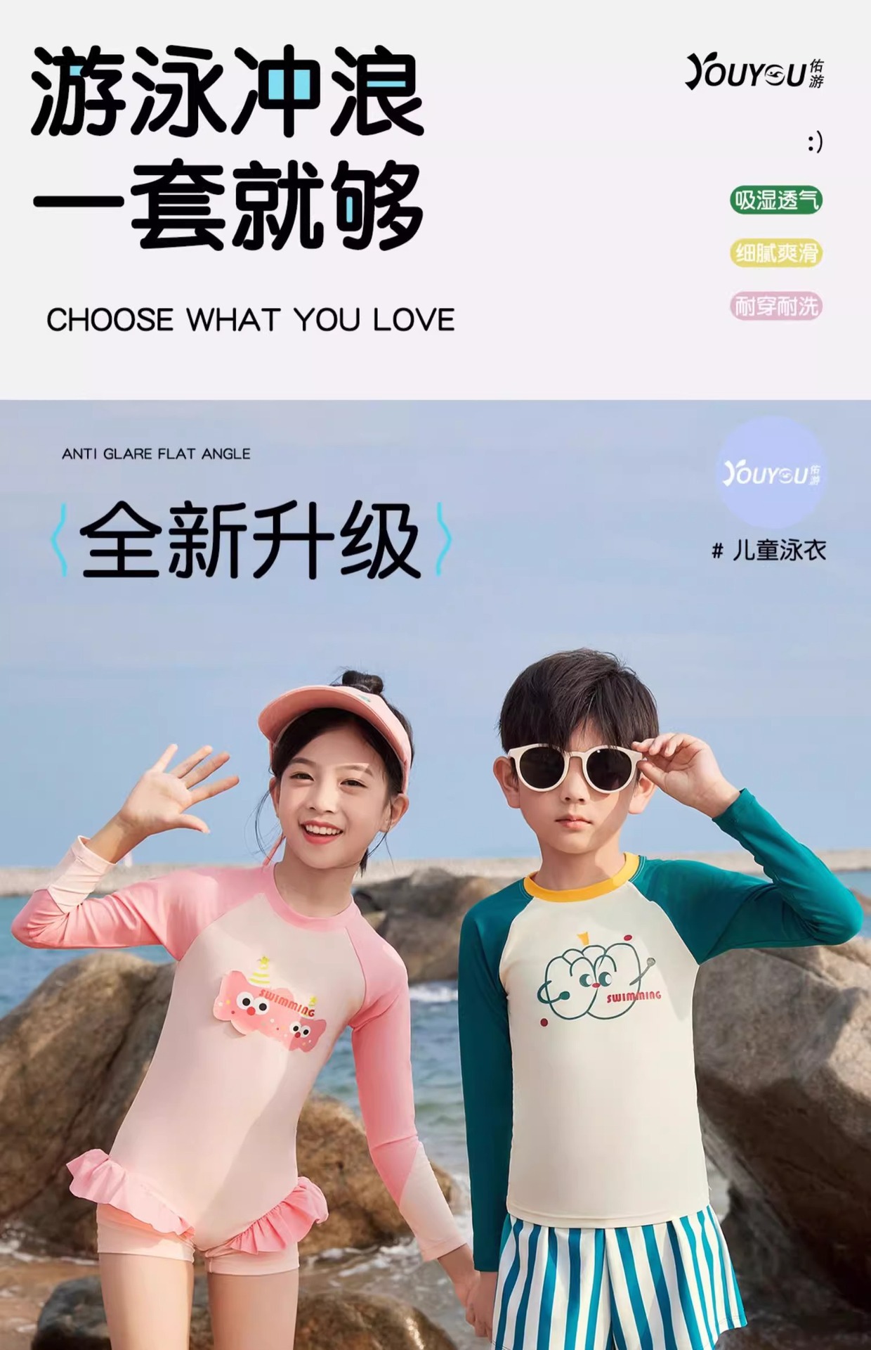 Youyou 어린이 수영복 여아 긴팔 세트 여아 쪼개진 남녀 중년 어린이 2025 신형 전문 급건조복스토어 가기