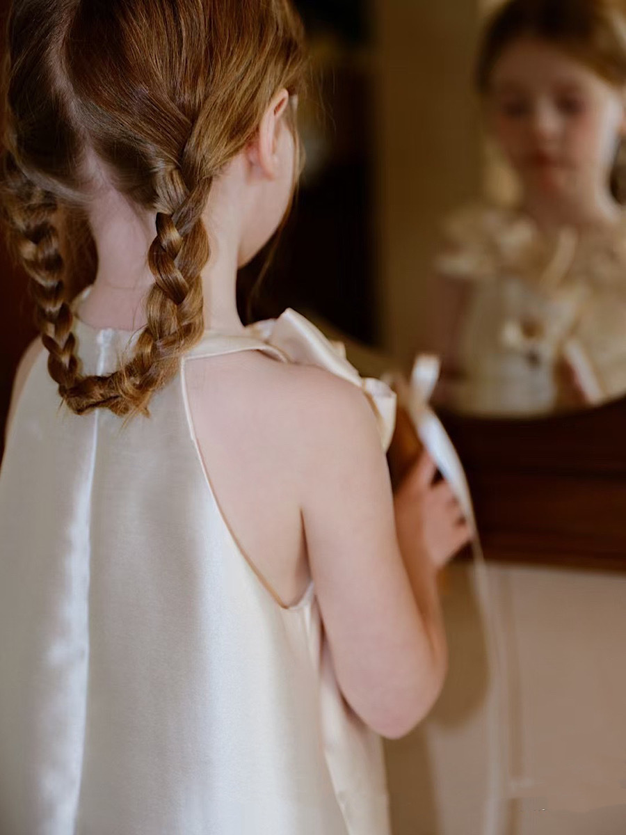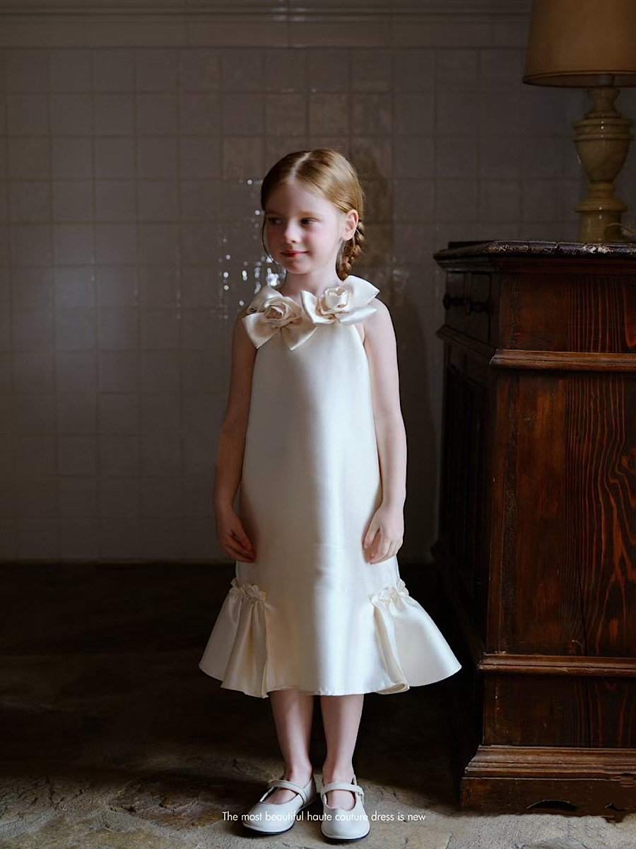 • 샴페인 컬러의 입체적인 꽃 피쉬테일 스커트