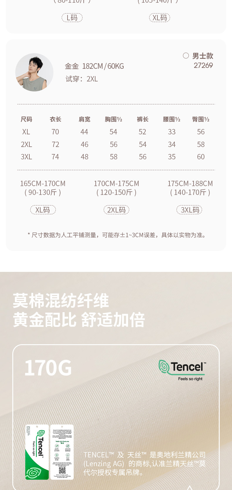 • 사이즈 추천표 [부드러움이 오래 지속되고, 맨살에 피부 친화적]