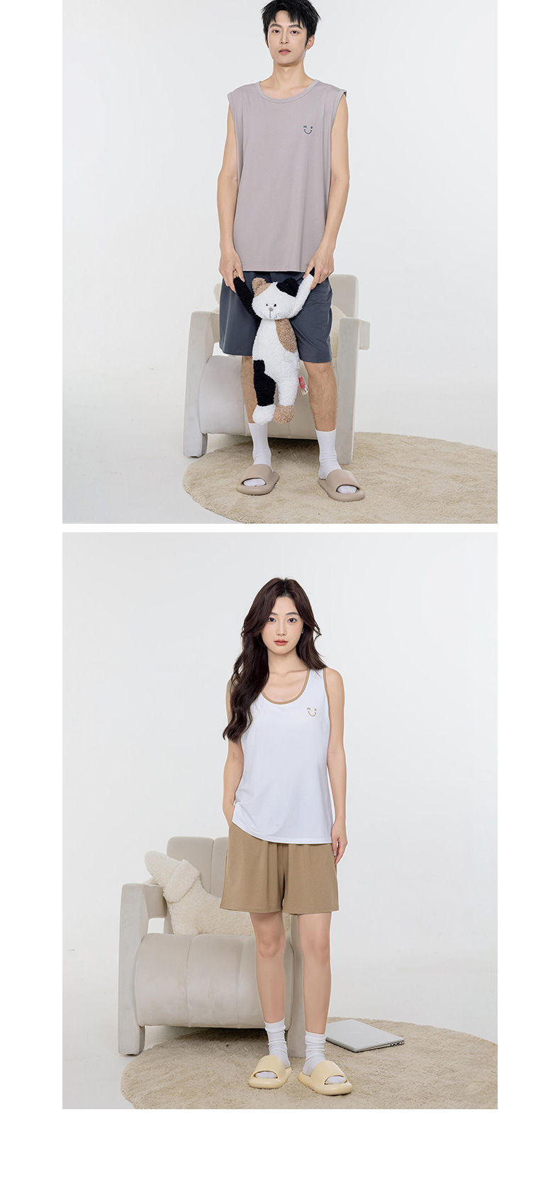 모달면 커플 파자마 조끼 가슴 패드 반바지 여성 남성 잠옷 커플 여름 새로운 간단한 세트스토어 가기