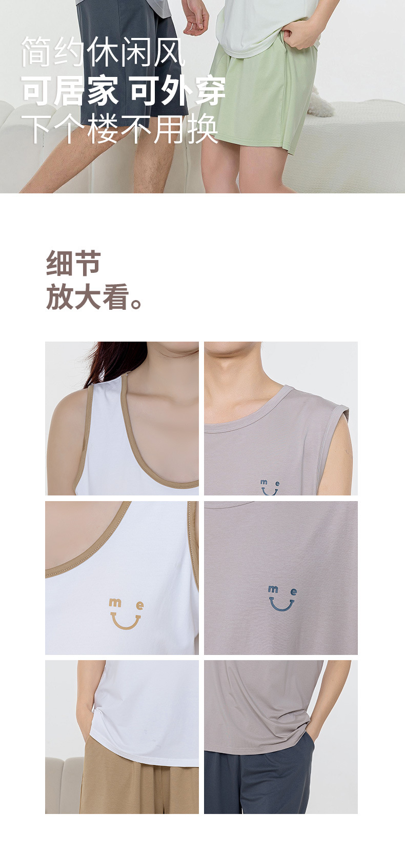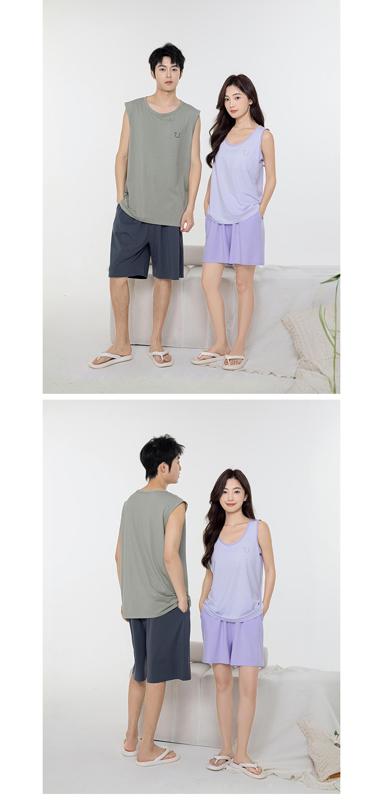 모달면 커플 파자마 조끼 가슴 패드 반바지 여성 남성 잠옷 커플 여름 새로운 간단한 세트
