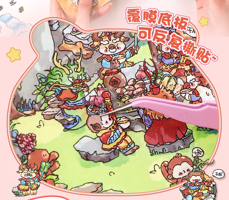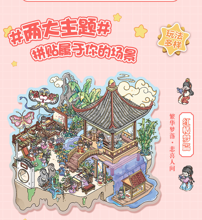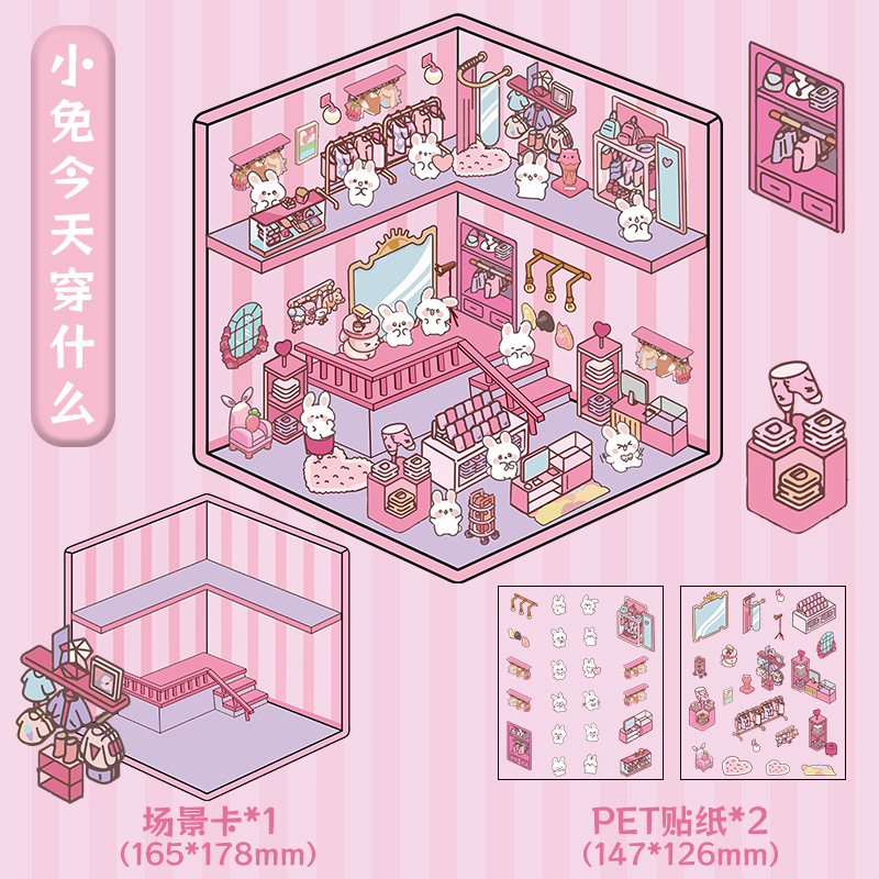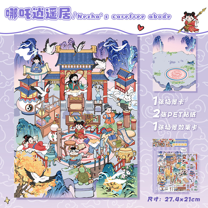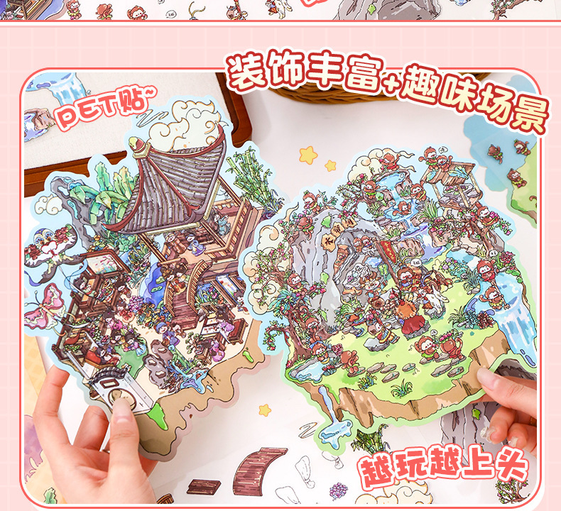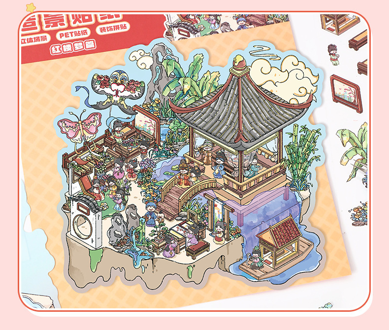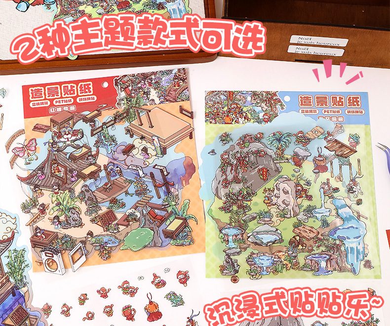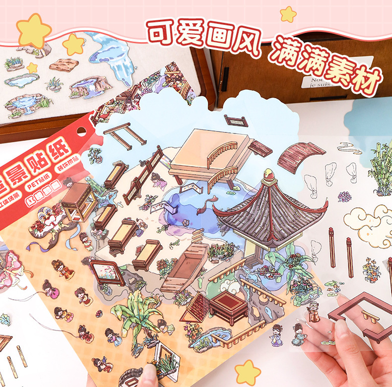 큰 골동품 풍경 스티커 스테레오 장면 감압 마이크로 스케일 스태킹 귀여운 오두막 스티커 DIY 손 계정 스티커스토어 가기