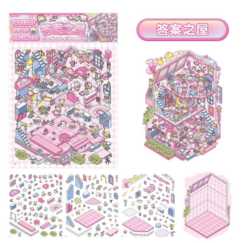 큰 골동품 풍경 스티커 스테레오 장면 감압 마이크로 스케일 스태킹 귀여운 오두막 스티커 DIY 손 계정 스티커