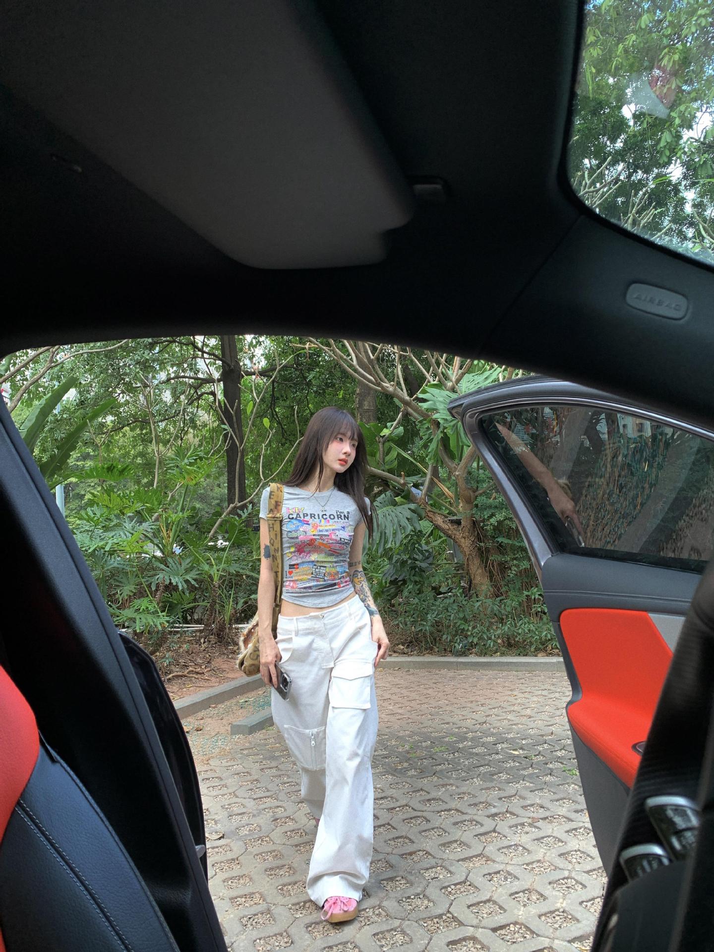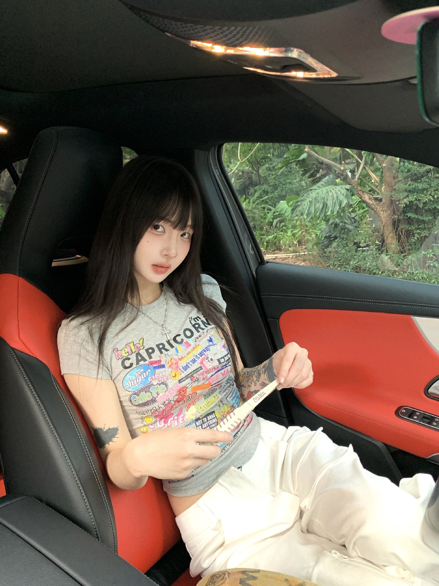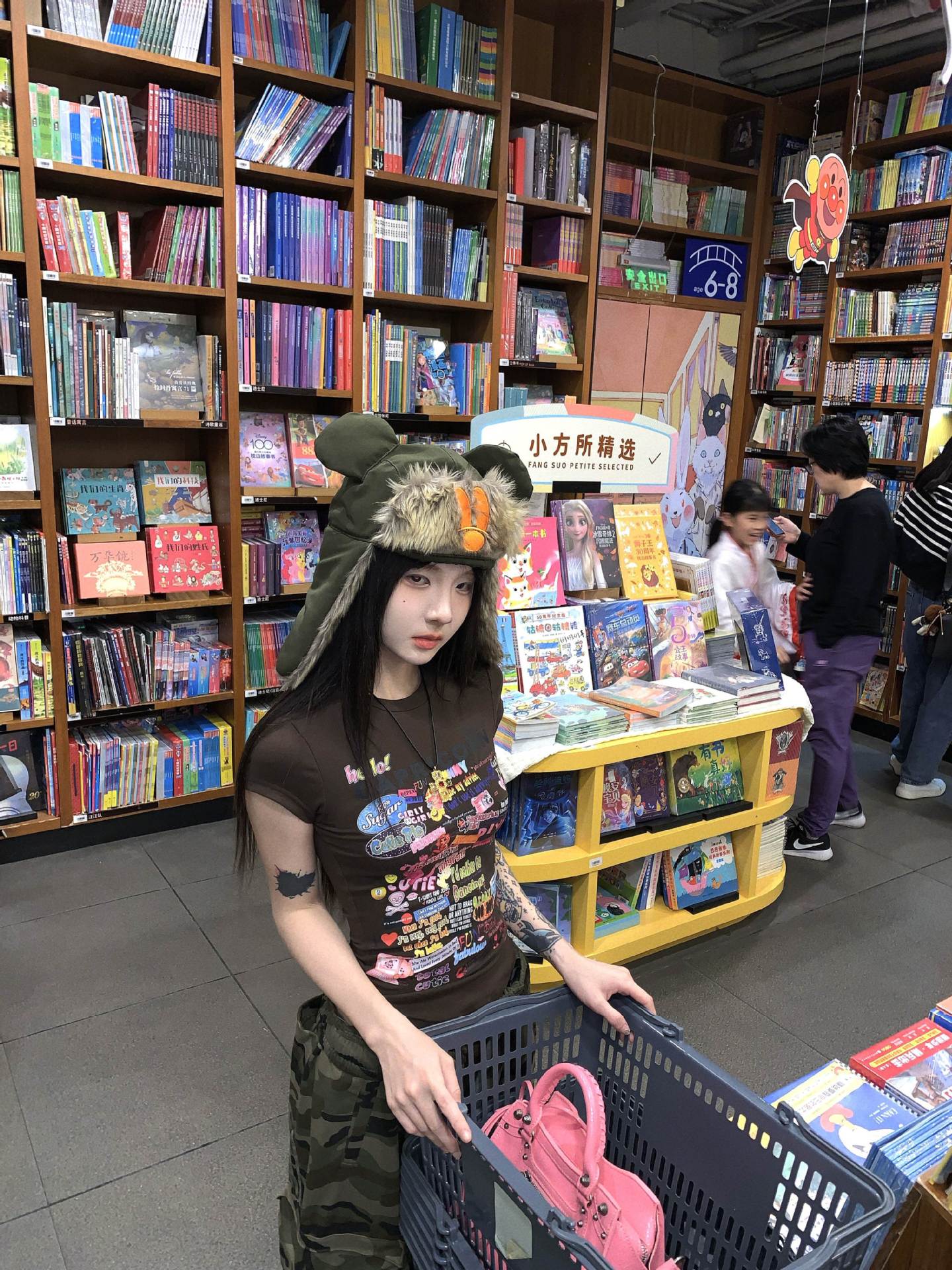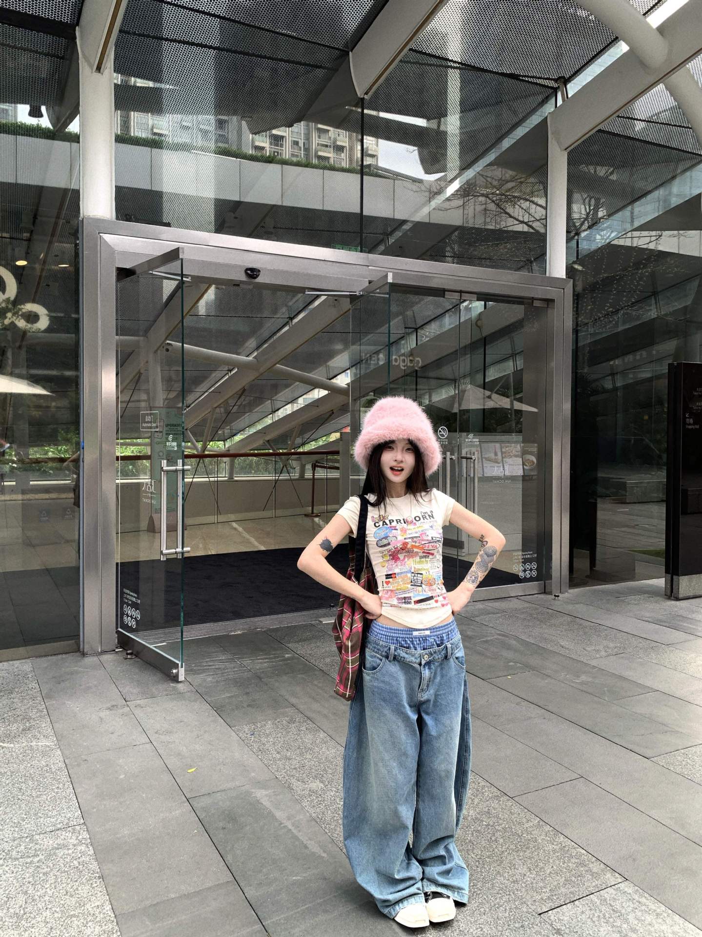 아메리칸 스타일 핫 걸 만화 인쇄 라운드 넥 반팔 티셔츠 여성 여름 2025 새로운 도착 슬림 핏 타이트 허리 쇼트 탑 트렌디스토어 가기