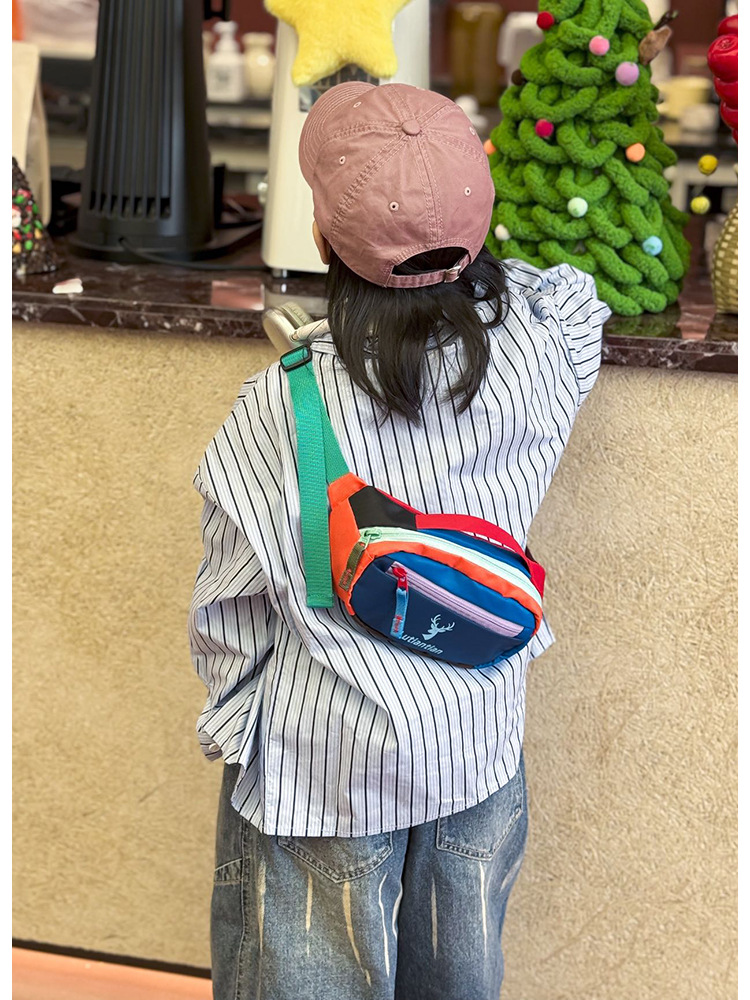 어린이 가방 야외 등산 허리 크로스 백 레인보우 스티칭 컬러 대조 안티 튀는 물 친화적 인 피부 저항성 휴대용 소형 가방스토어 가기
