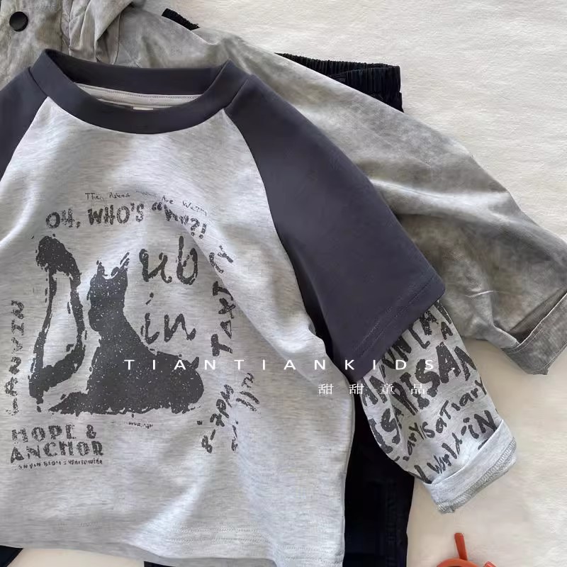 2026 봄 신상품 호주지리 아동복 남아 투피스 스타일 레터링 아메리칸 스타일 아동복 긴팔 티셔츠 도매스토어 가기