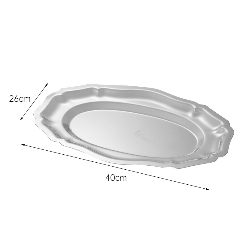 304 스테인레스 스틸 타원형 레이스 플레이트 러시아 음식 스낵 디저트 플레이트 과일 플레이트 고급 케이크 트레이