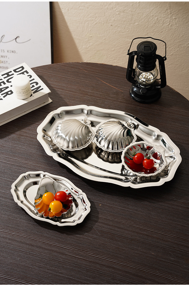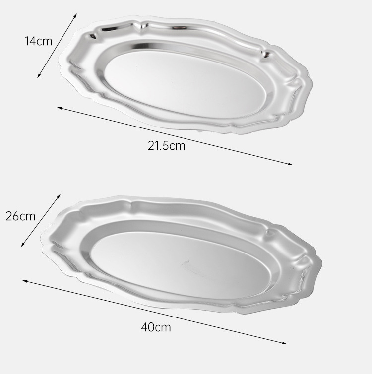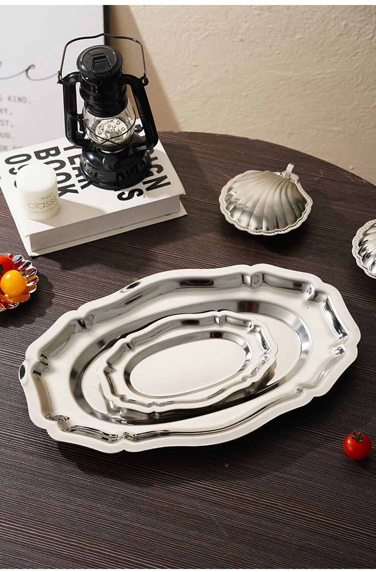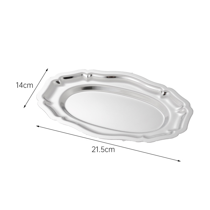 304 스테인레스 스틸 타원형 레이스 플레이트 러시아 음식 스낵 디저트 플레이트 과일 플레이트 고급 케이크 트레이스토어 가기