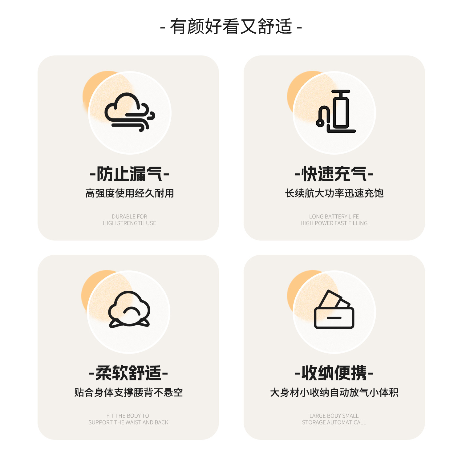 • (3~4인용 25cm 모델) 카키색 등받이 모델 [원클릭 자동 팽창/수축 - 배터리 수명 모델] (복숭아 피부 베개 무료*3)