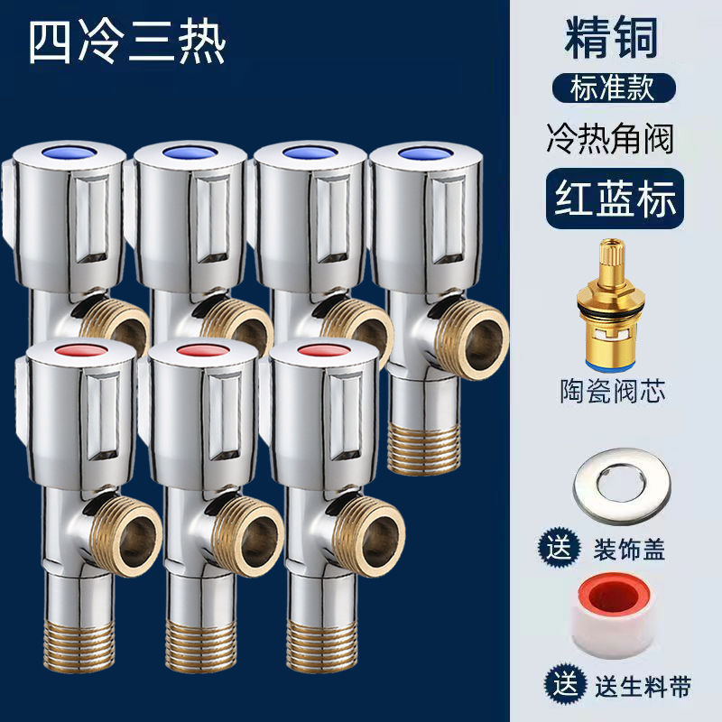 삼각형 밸브 미세 구리는 냉수 및 온수 4 점 가정용 밸브 스위치 1 대 1 화장실 온수기 워터 스톱 밸브