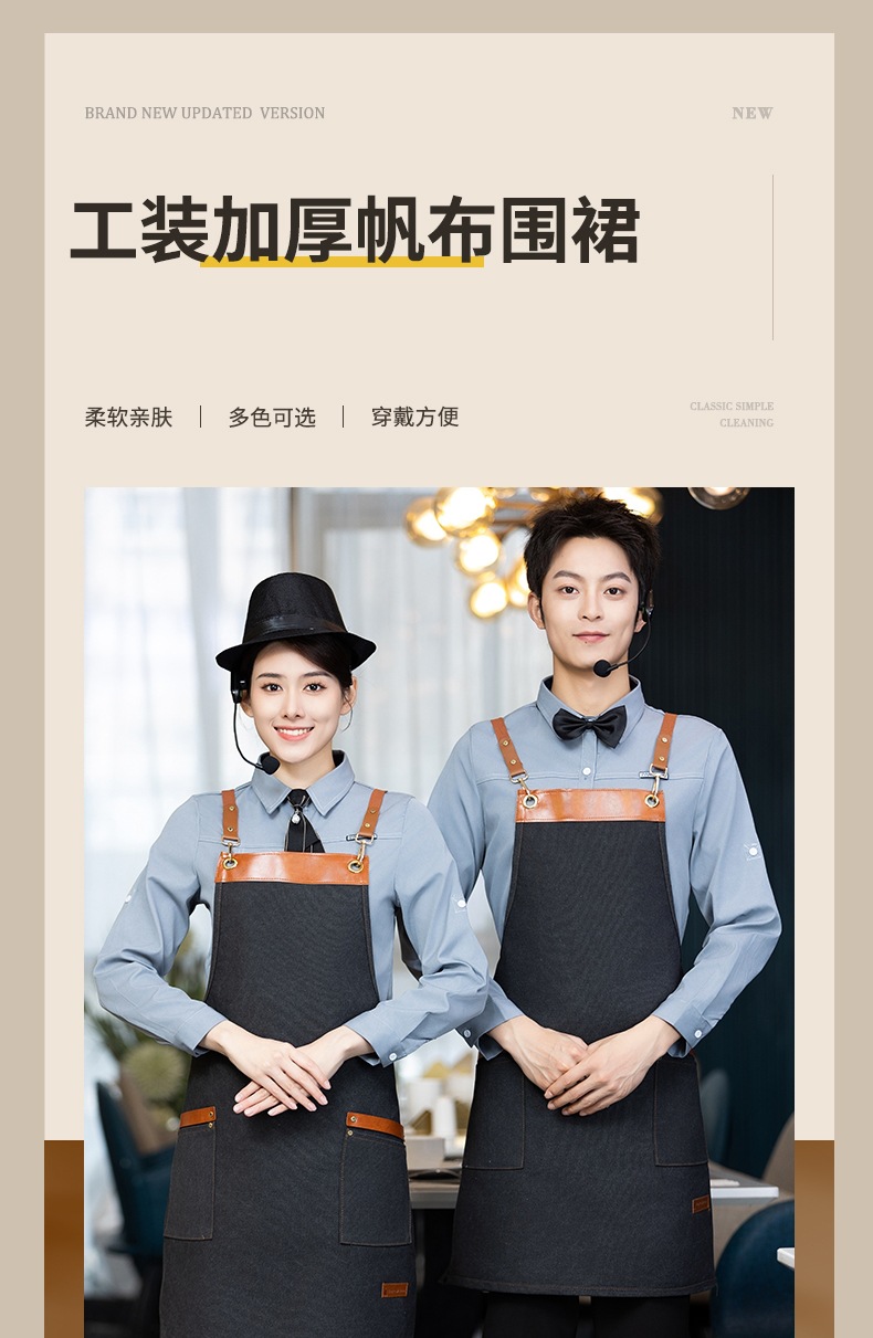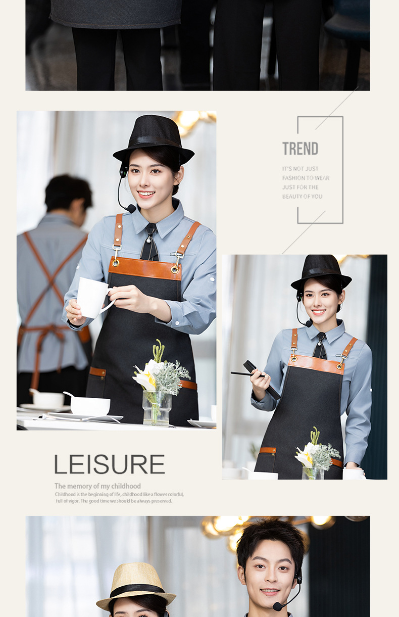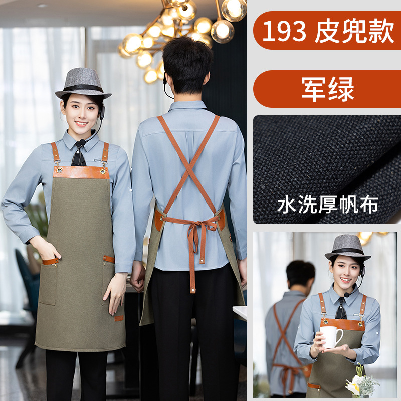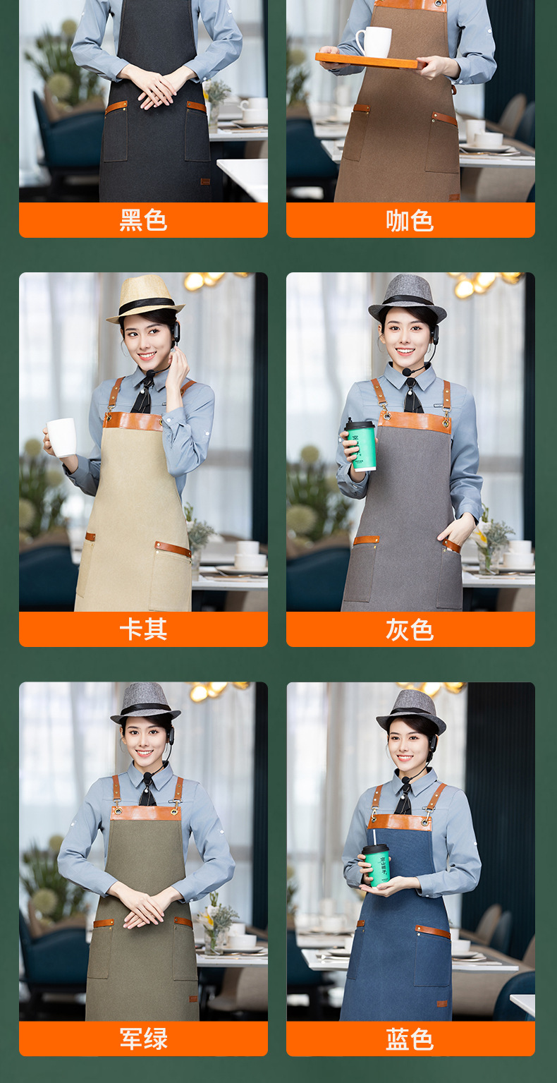 밀크티 커피숍 서양식 레스토랑 두꺼운 캔버스 앞치마 남성 여성 패션 트렌드 작업복 앞치마