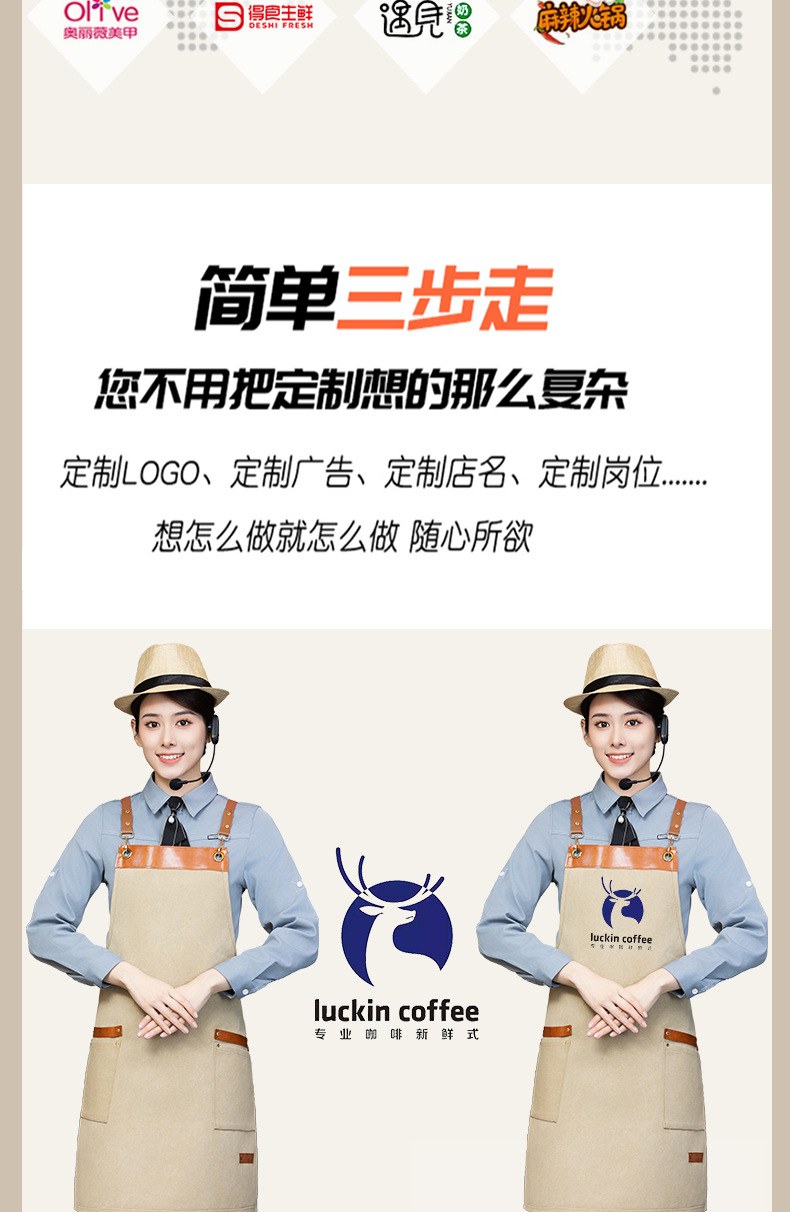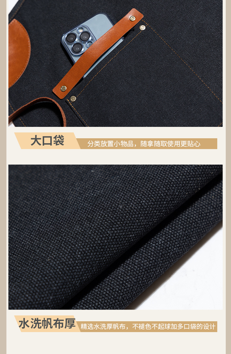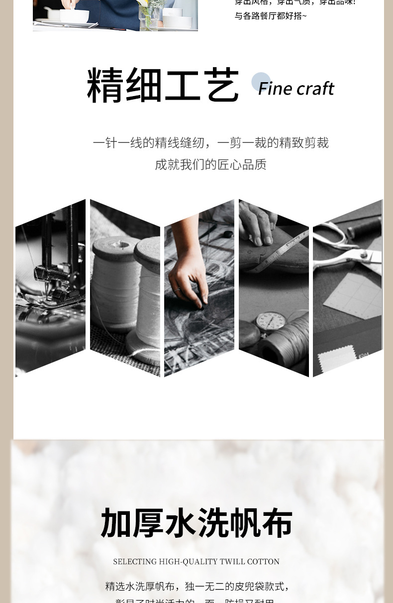 밀크티 커피숍 서양식 레스토랑 두꺼운 캔버스 앞치마 남성 여성 패션 트렌드 작업복 앞치마