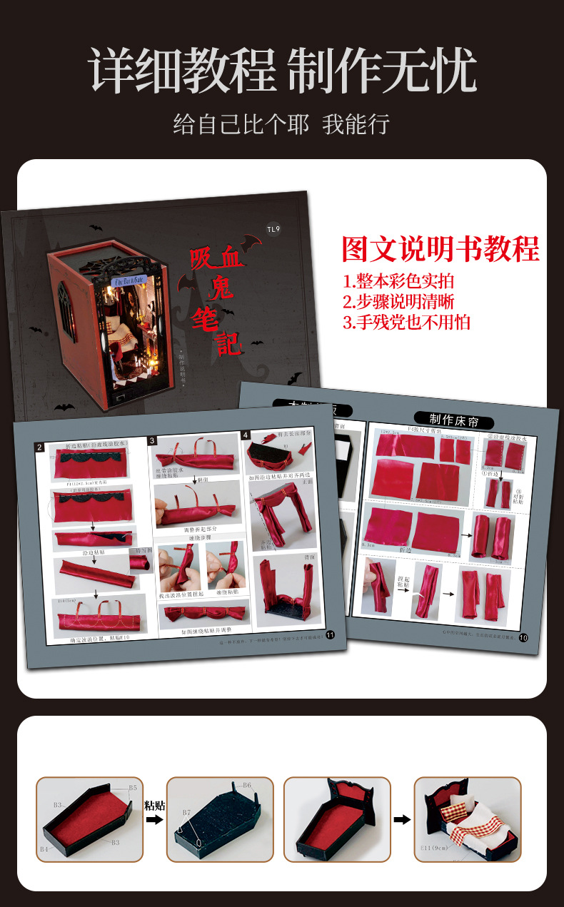 Tianyu diy 캐빈 북 스탠드 뱀파이어 일기 손으로 조립 미니 미니어처 장면 모델 크리 에이 티브 선물