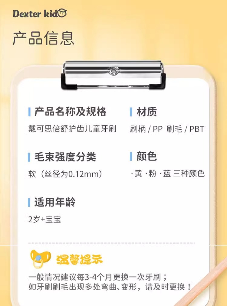 • 2세 이상 노란색 어린이 칫솔 (1팩)