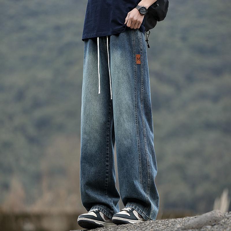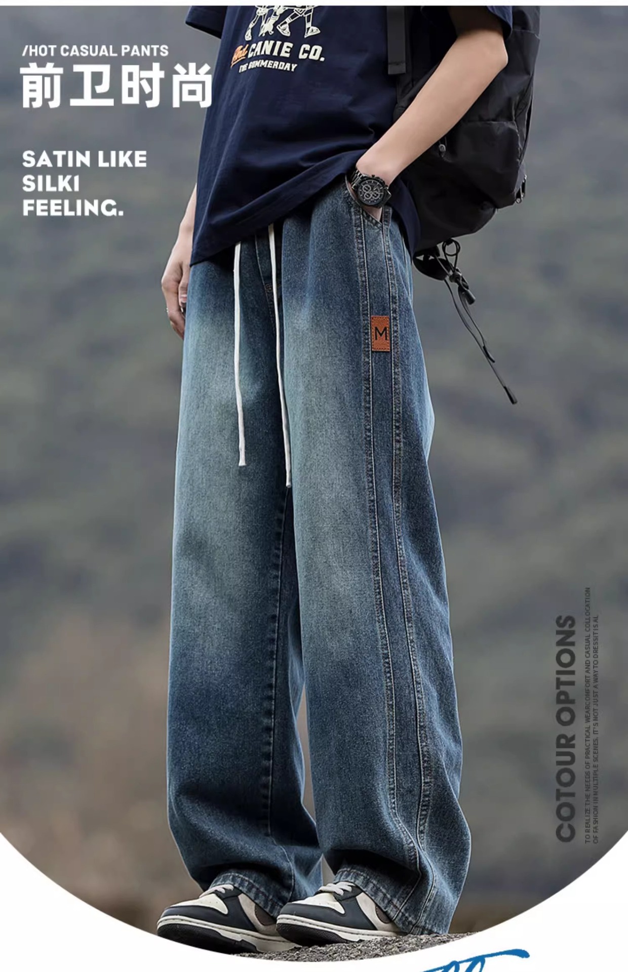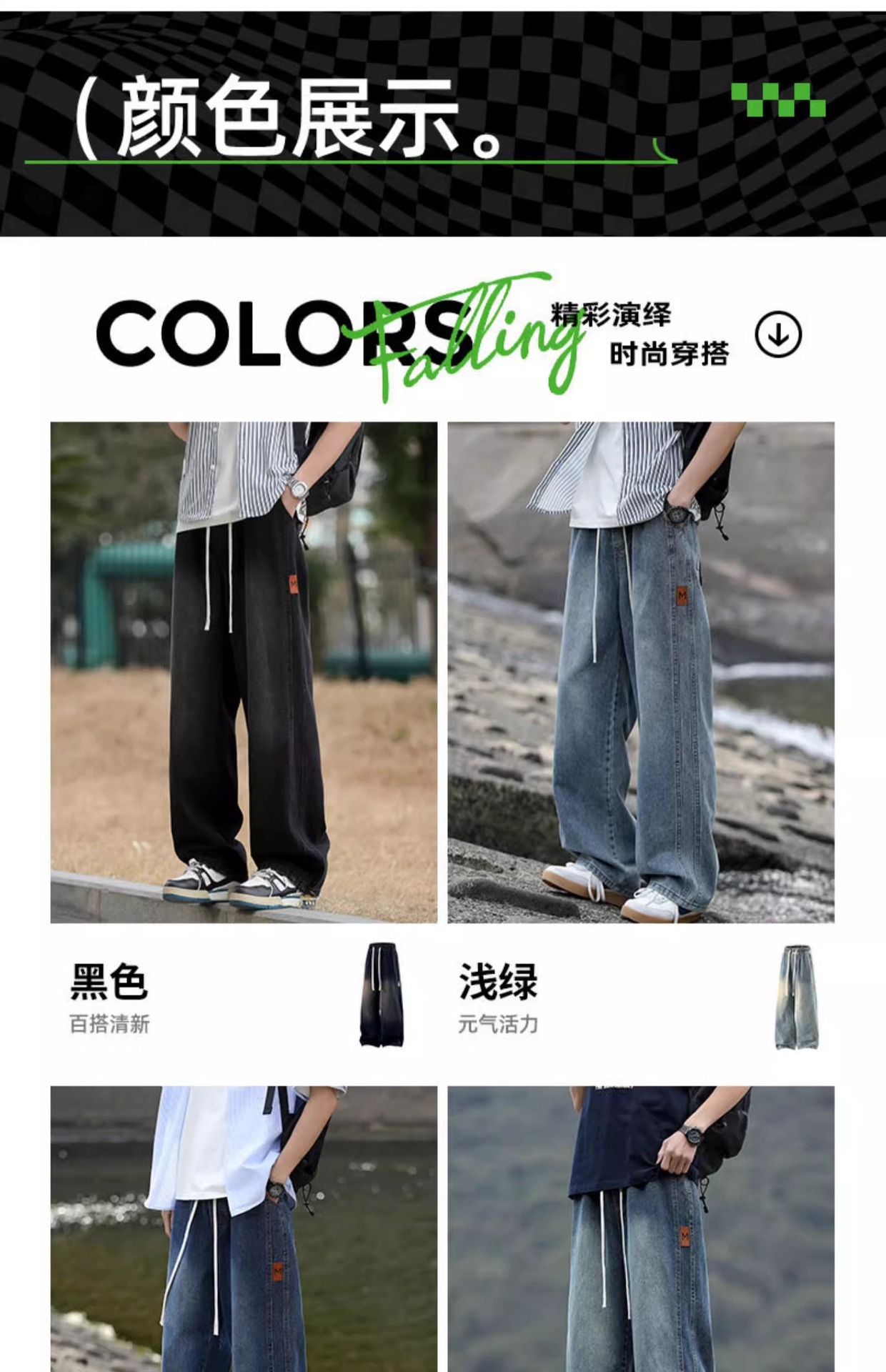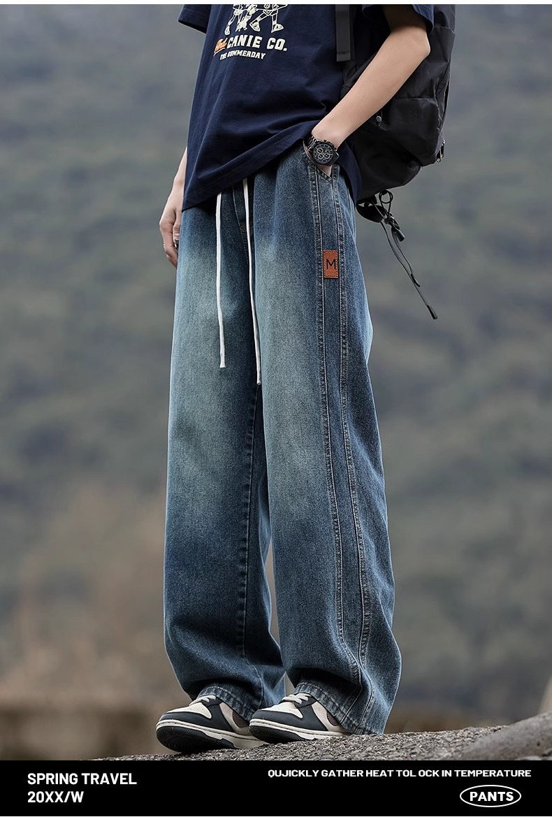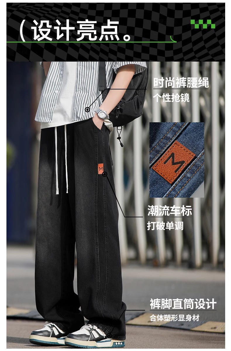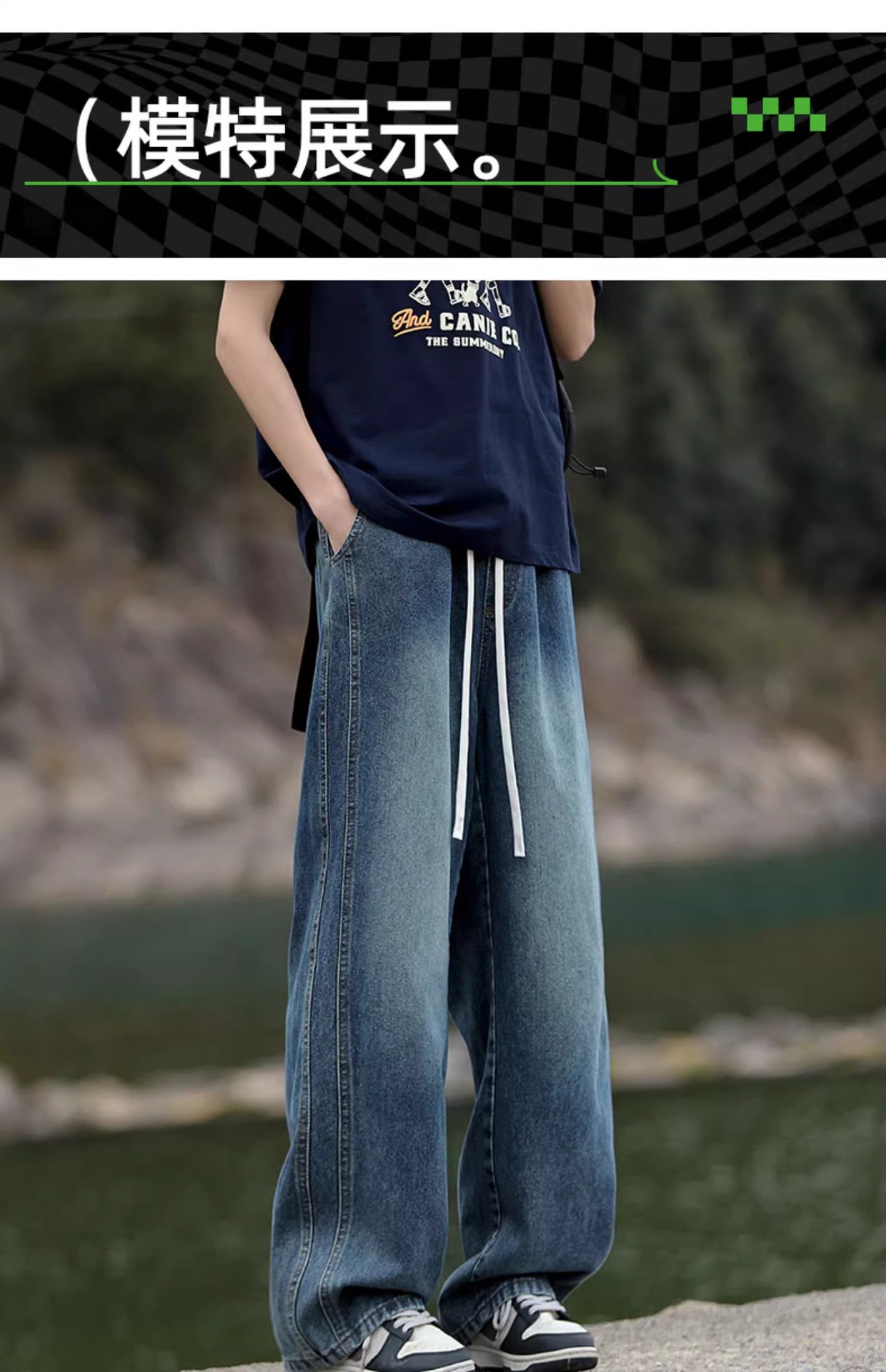 NASA 레트로 하이 스트리트 청바지 남성용 봄과 여름 새로운 느슨한 스트레이트 그라디언트 트렌디 브랜드 와이드 레그 캐주얼 바지스토어 가기