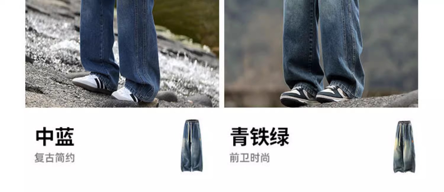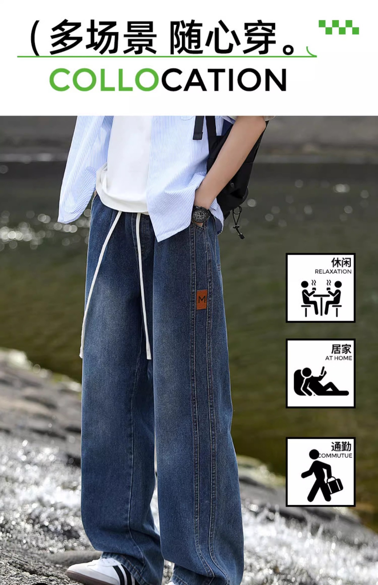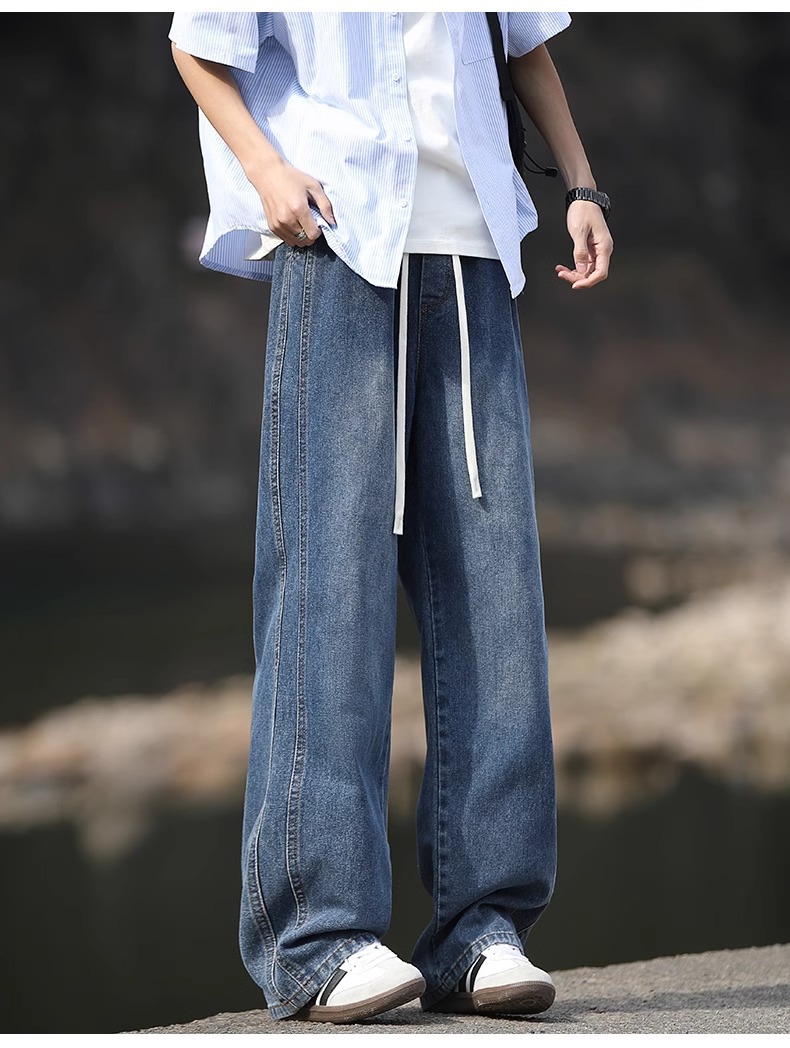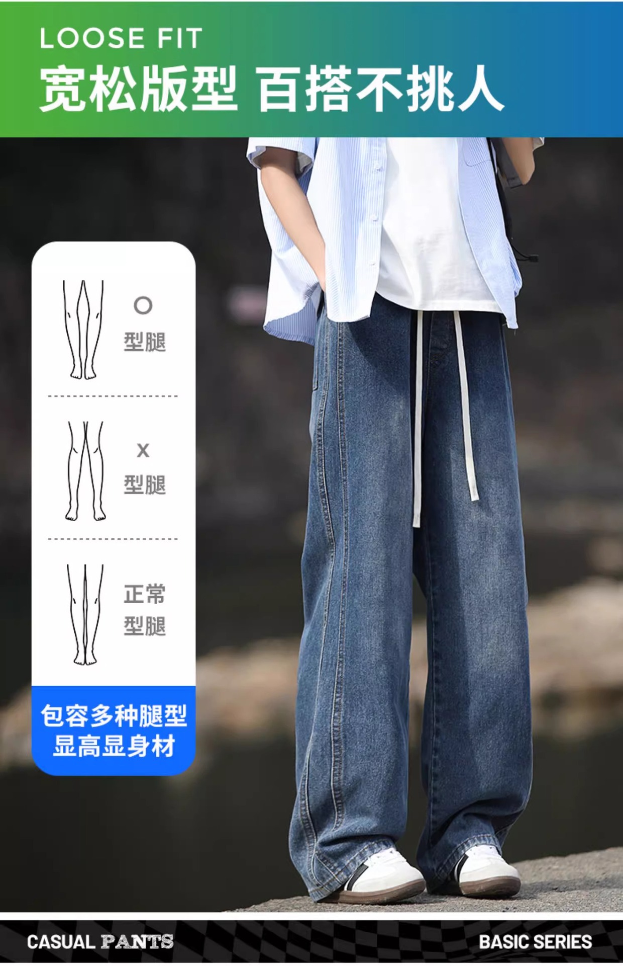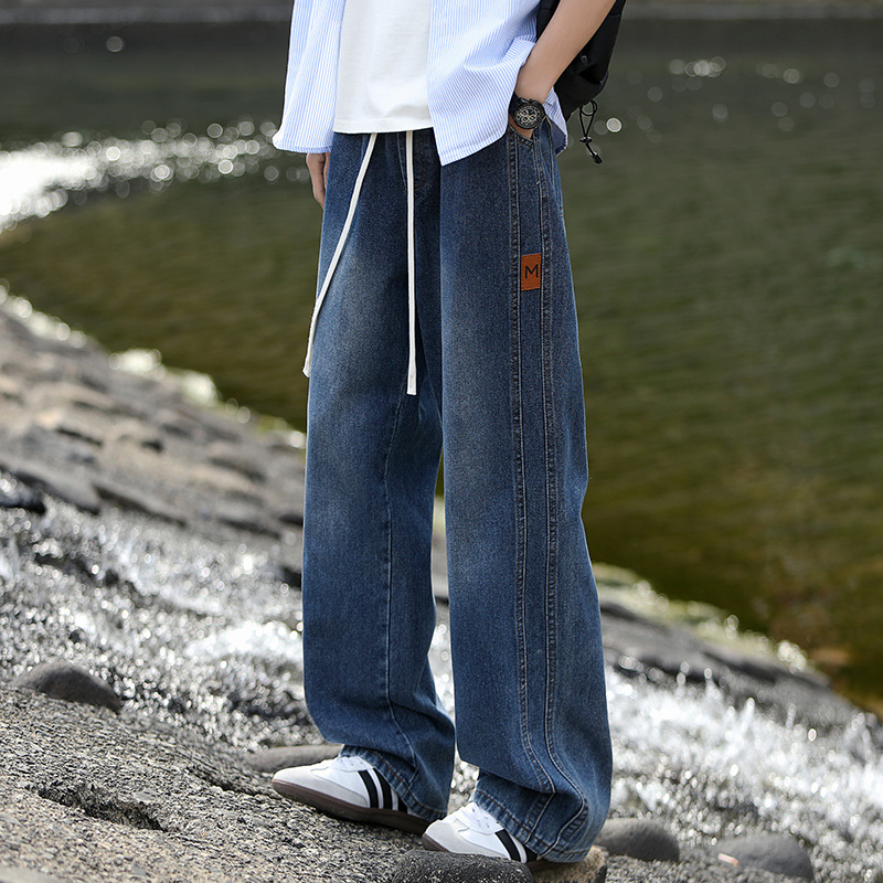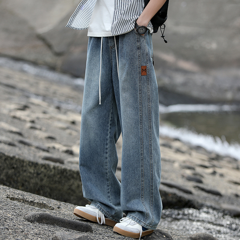 NASA 레트로 하이 스트리트 청바지 남성용 봄과 여름 새로운 느슨한 스트레이트 그라디언트 트렌디 브랜드 와이드 레그 캐주얼 바지스토어 가기