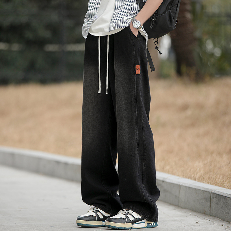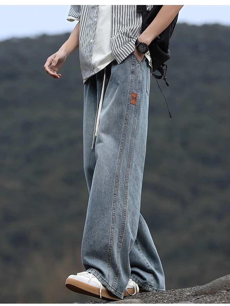 NASA 레트로 하이 스트리트 청바지 남성용 봄과 여름 새로운 느슨한 스트레이트 그라디언트 트렌디 브랜드 와이드 레그 캐주얼 바지