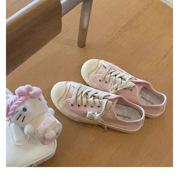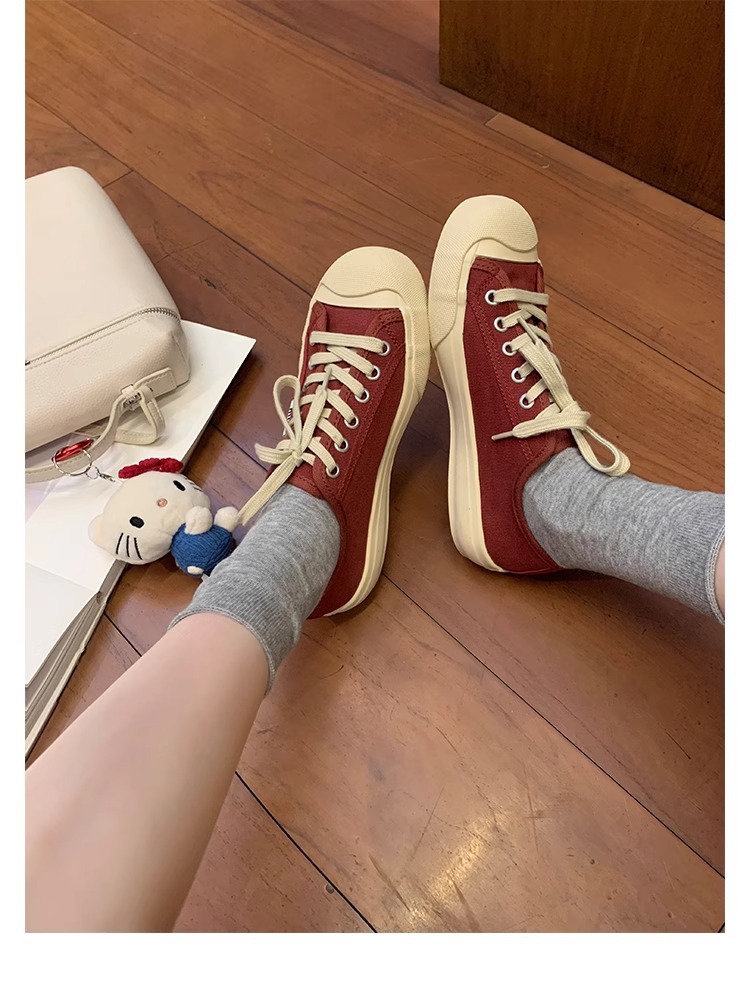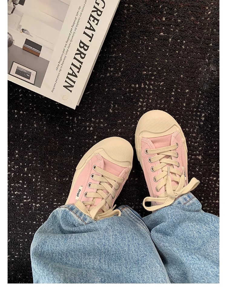 2025 포도 엄마 같은 스타일 뉴 에이지 감소 작은 라운드 헤드 올 매치 레이스업 로우 탑 화이트 신발 캔버스 신발 여성의 봄