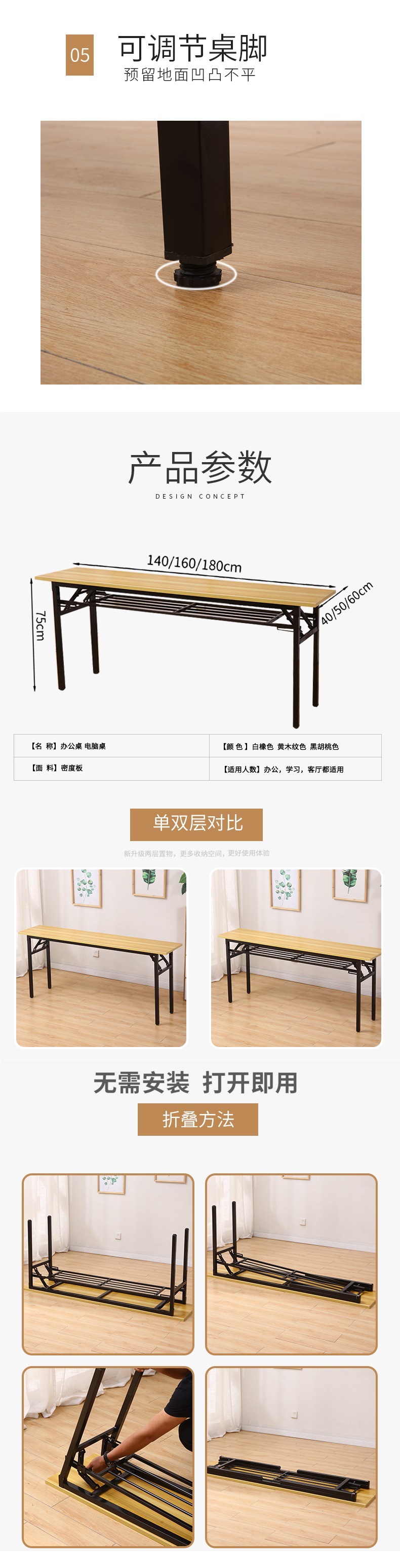 • [두꺼운 테이블 프레임] 더블 레이어 180*60 안정형, 최소 주문 2개