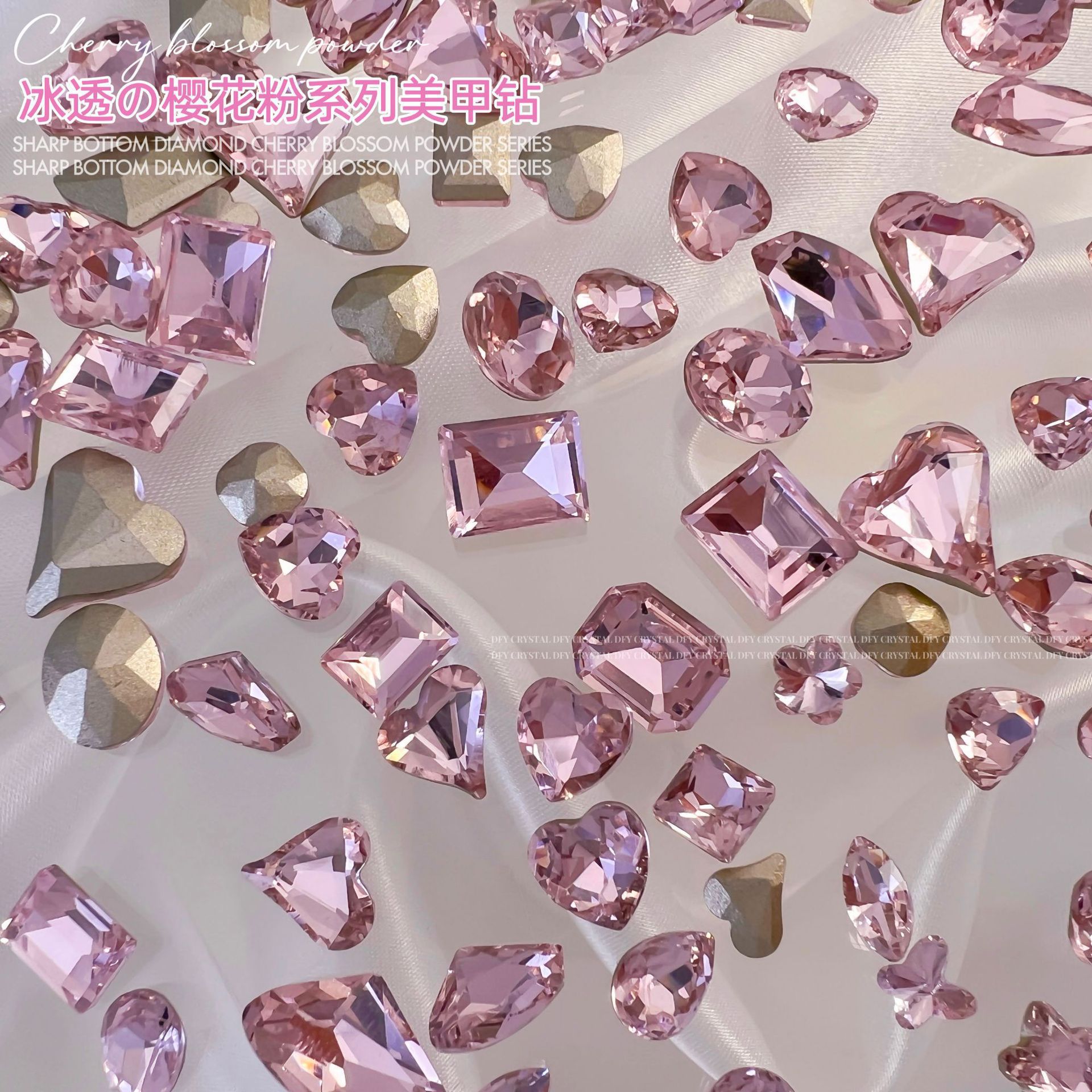 인터넷 유명인 크리스탈 네일아트 다이아몬드 핑크색 뾰족한 다이아몬드 혼합 사각형 물방울 나비 반짝이는 특수 모양 다이아몬드 네일아트 장식품