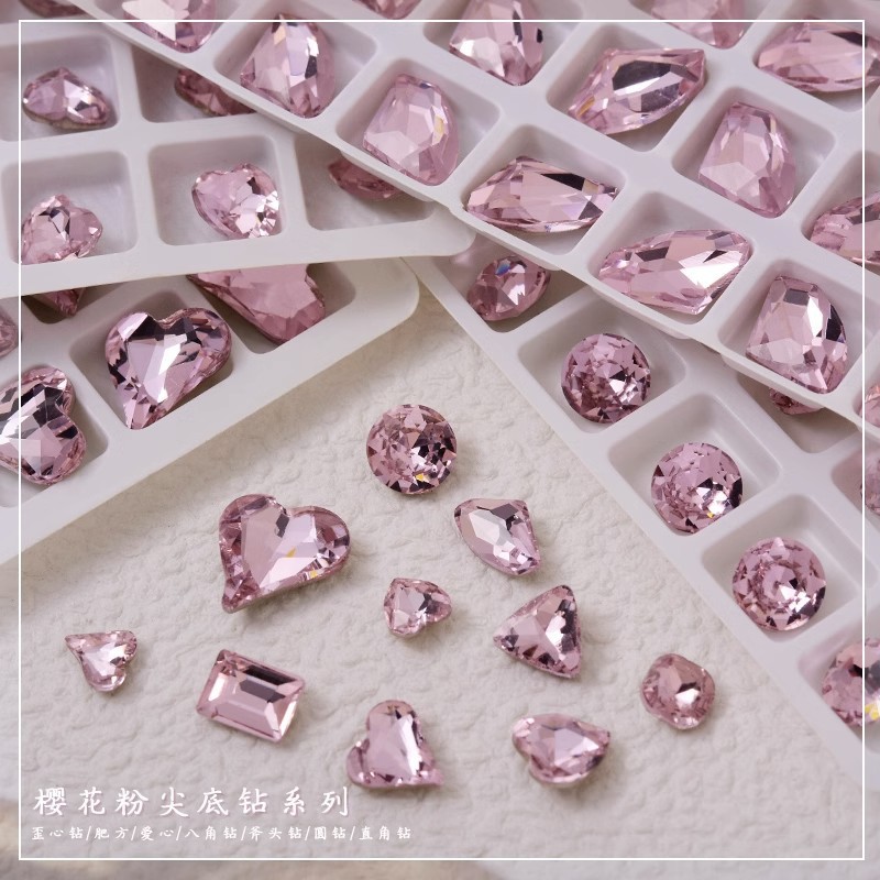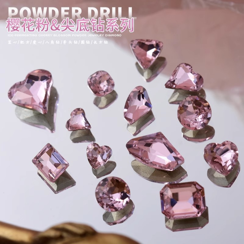 인터넷 유명인 크리스탈 네일아트 다이아몬드 핑크색 뾰족한 다이아몬드 혼합 사각형 물방울 나비 반짝이는 특수 모양 다이아몬드 네일아트 장식품스토어 가기