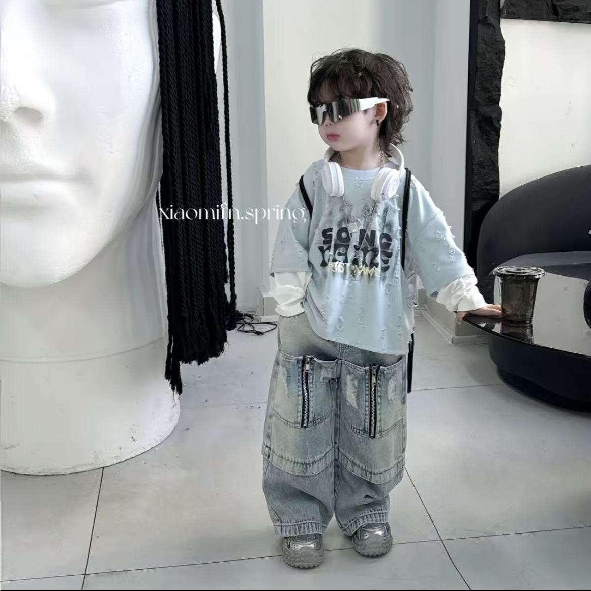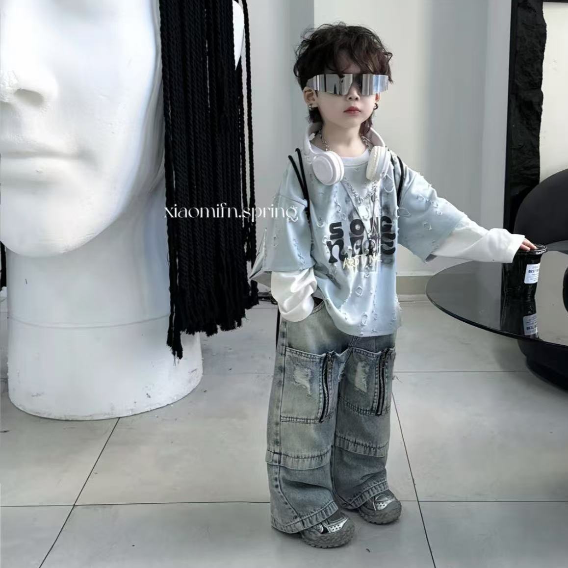 소년 봄 2025 새로운 가짜 투피스 한국 스타일 느슨하고 편안한 서양식 어린이 스웨터 잘 익은 세트 트렌디스토어 가기