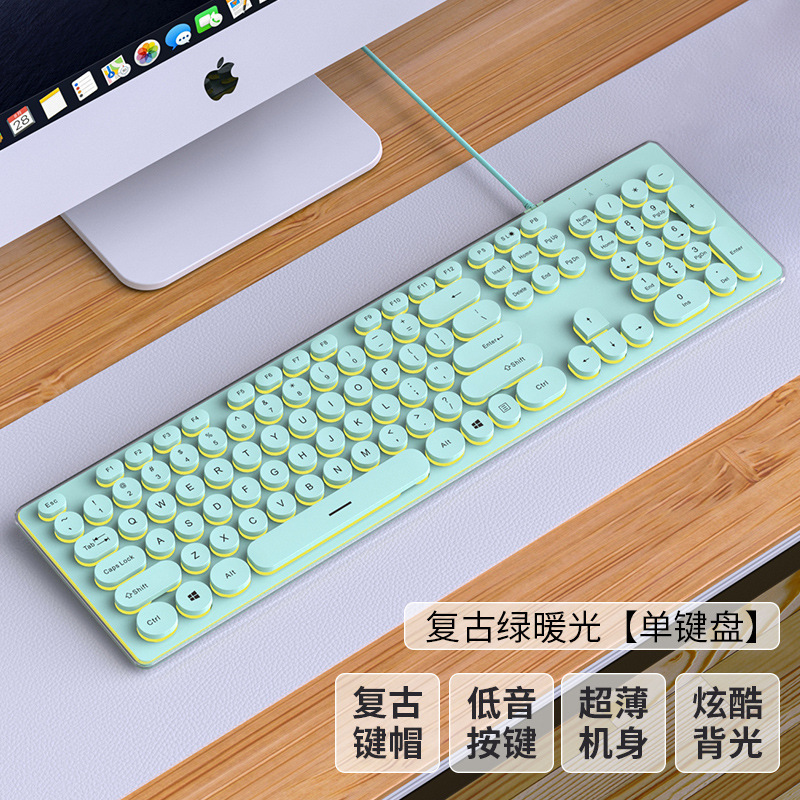 기계 느낌 키보드 음소거 사무실 컴퓨터 소녀 귀여운 유선 초콜릿 필름 키보드 마우스 세트 없음